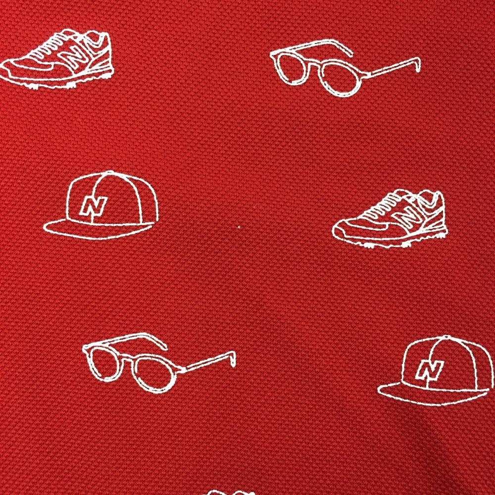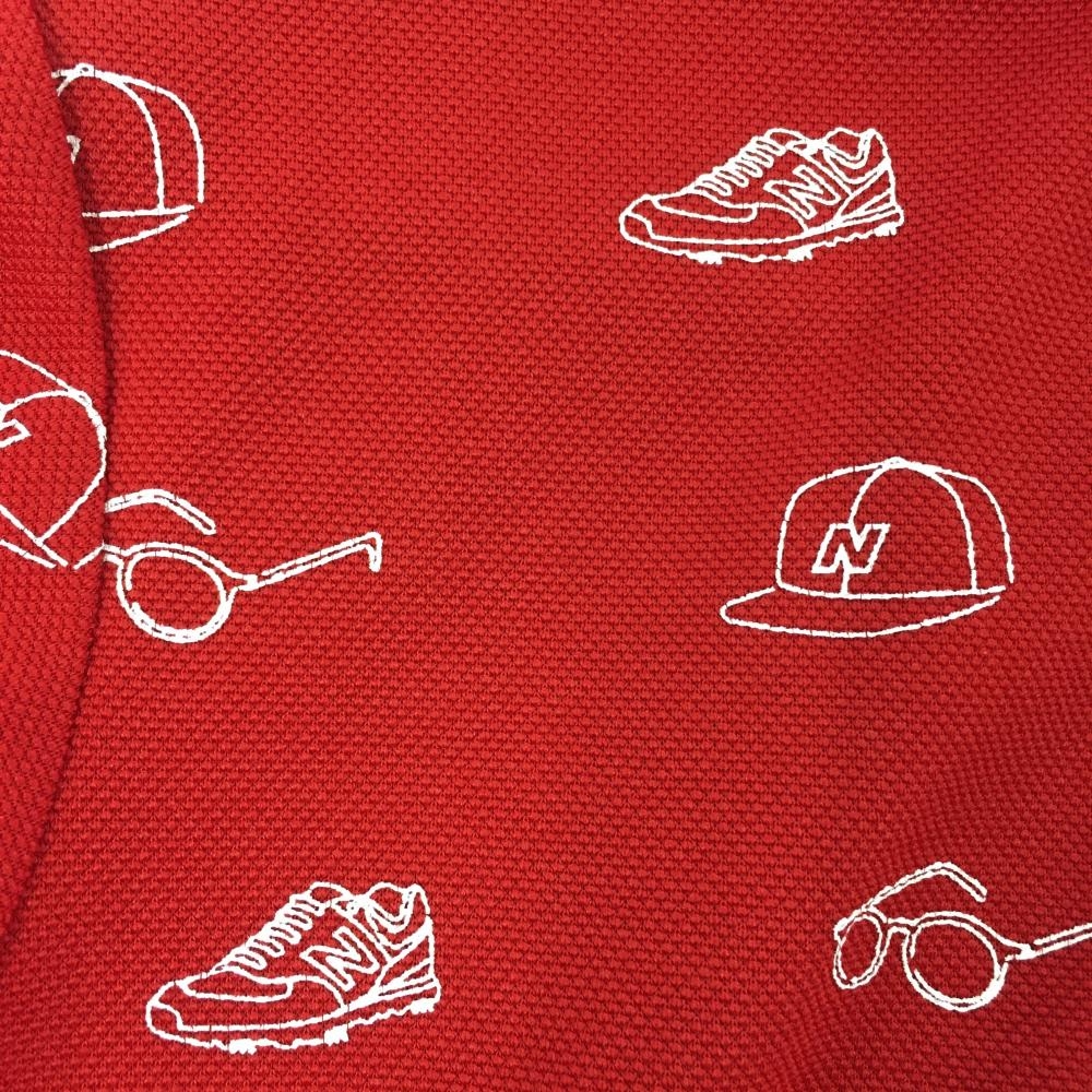 ニューバランスゴルフ 半袖ポロシャツ レッド×白 総柄 シューズワッペン ボタンダウン レディース 1(M) ゴルフウェア New Balance