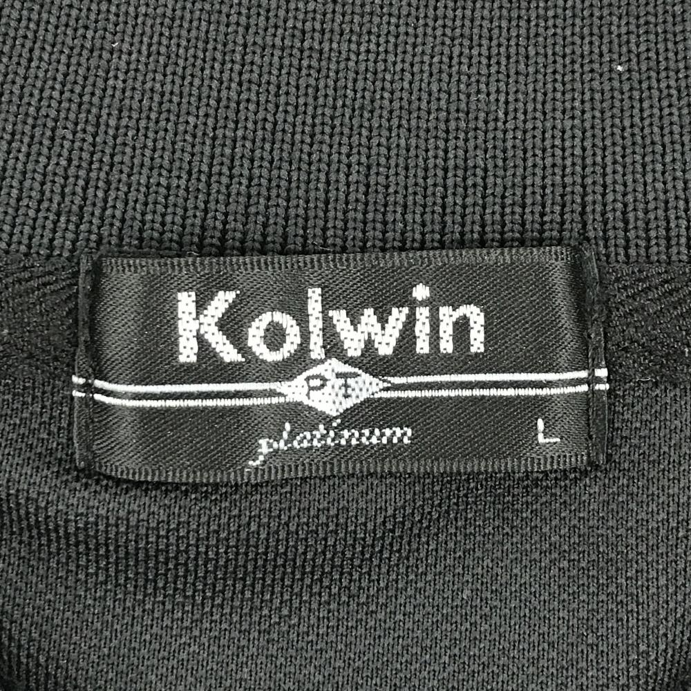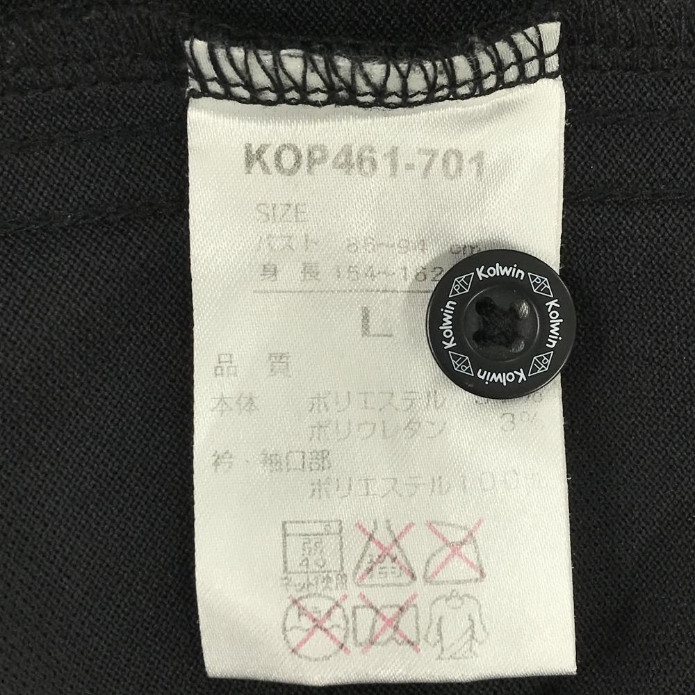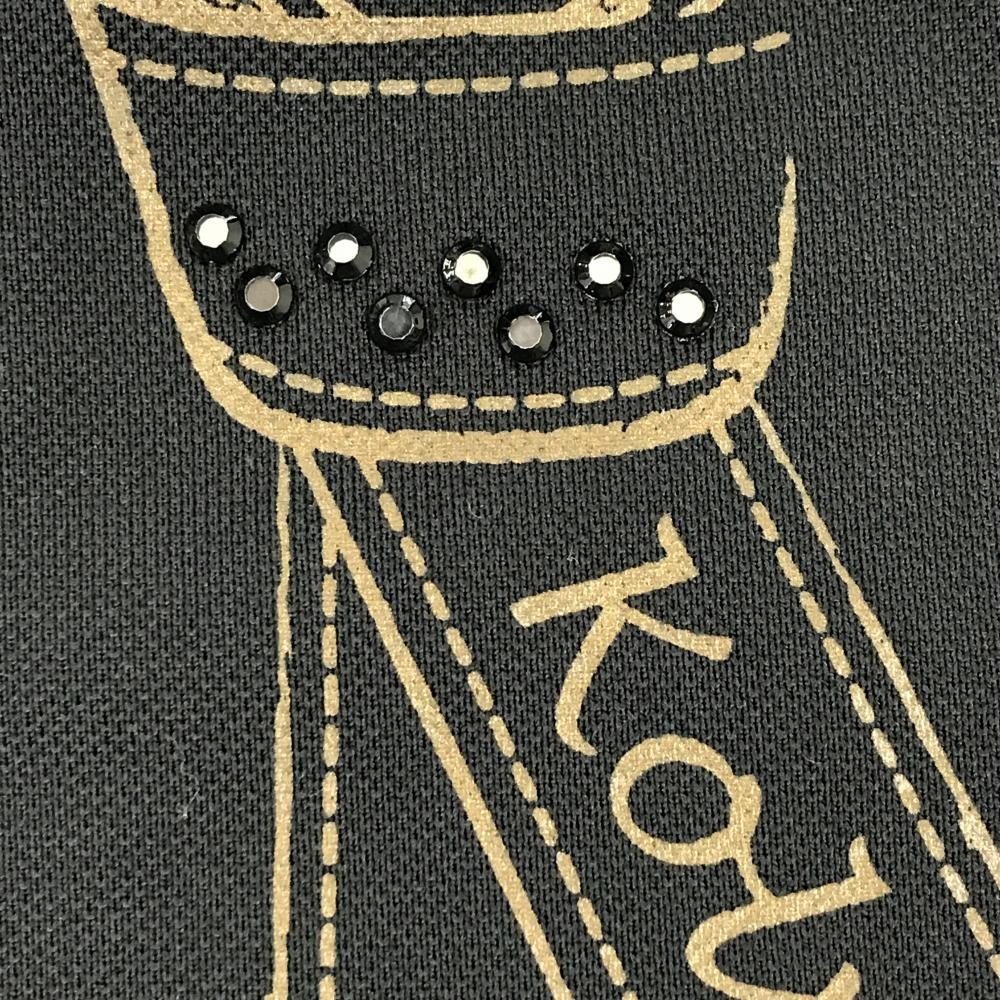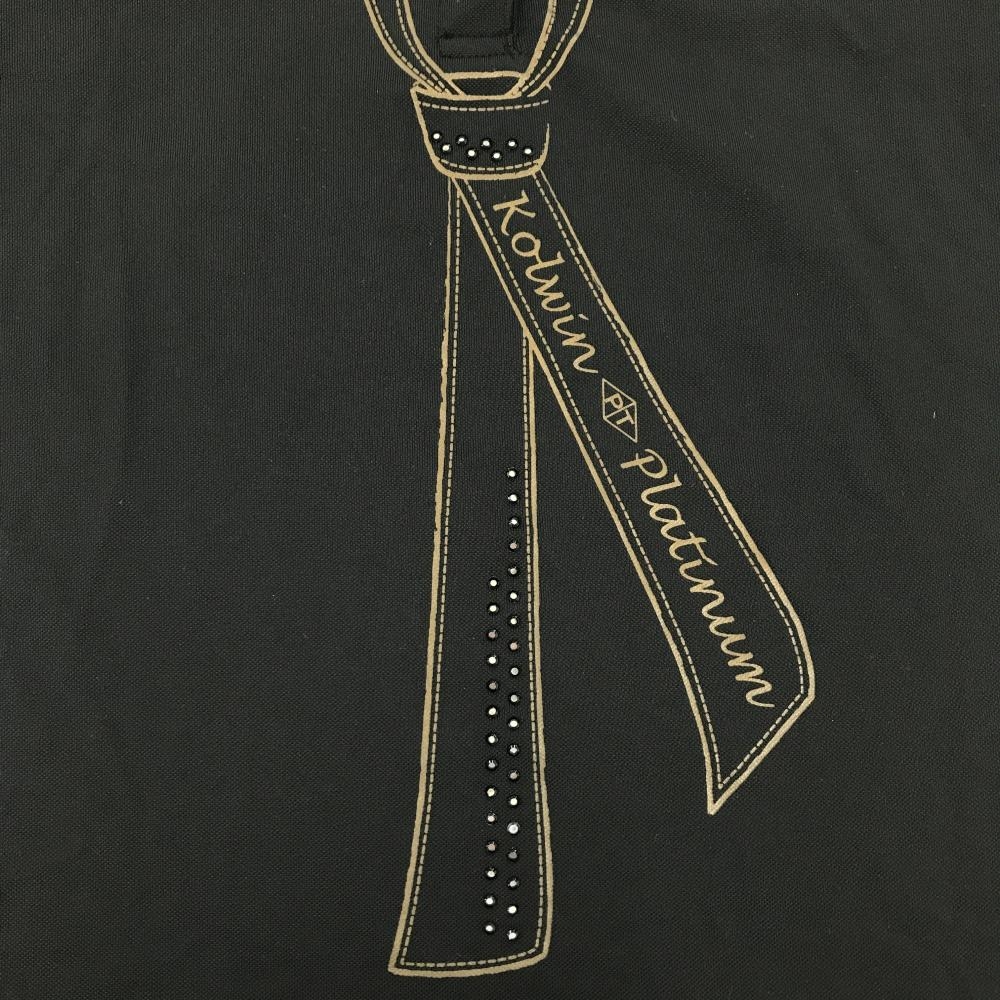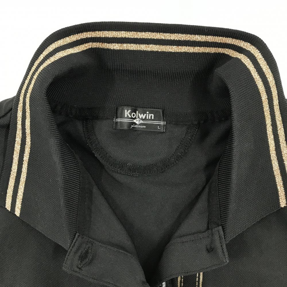 【美品】コルウィン 半袖ポロシャツ 黒×ゴールド 襟ライン ネクタイ柄 ストーン レディース L ゴルフウェア Kolwin