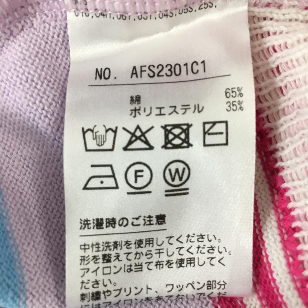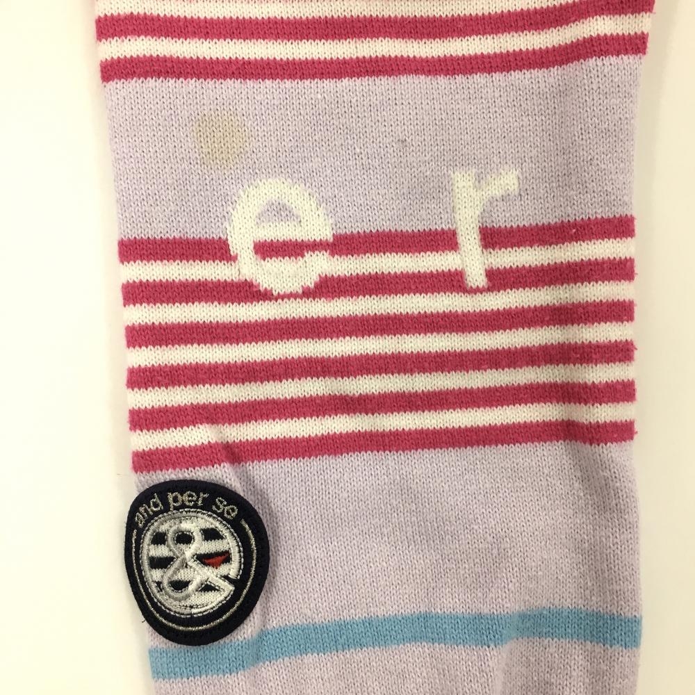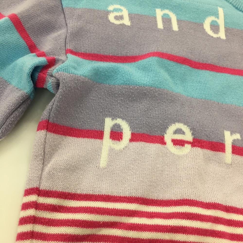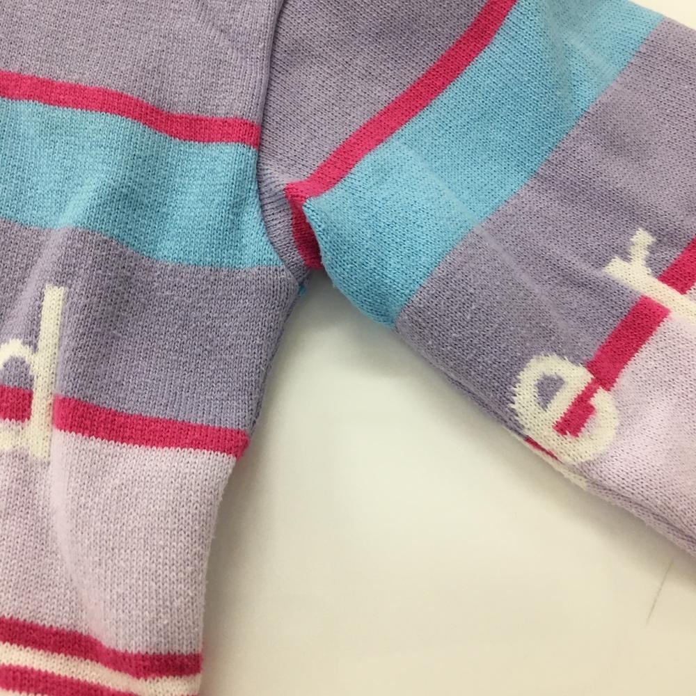 アンパスィ セーター ライトブルー×ピンク×パープル ランダムボーダー ロゴ ニット レディース M ゴルフウェア and per se