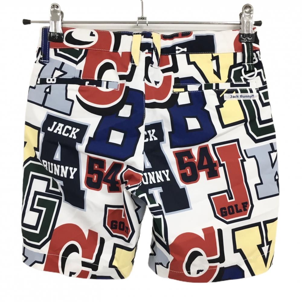 【超美品】ジャックバニー ハーフパンツ 白×マルチカラー ビッグロゴ柄 ジュニア・キッズ 130 ゴルフウェア Jack Bunny