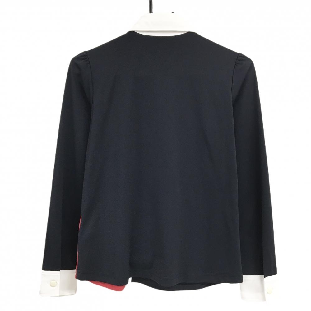 【美品】ヒールクリーク 長袖ポロシャツ 黒×レッド×白 ロゴプリント レディース 40(M) ゴルフウェア Heal Creek