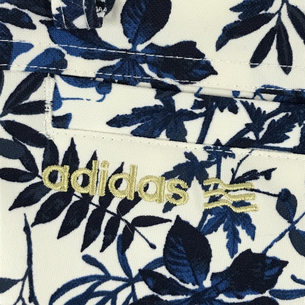 【超美品】アディダス ショートパンツ 白×ブルー リーフ総柄 ロゴイエロー レディース S/P ゴルフウェア adidas