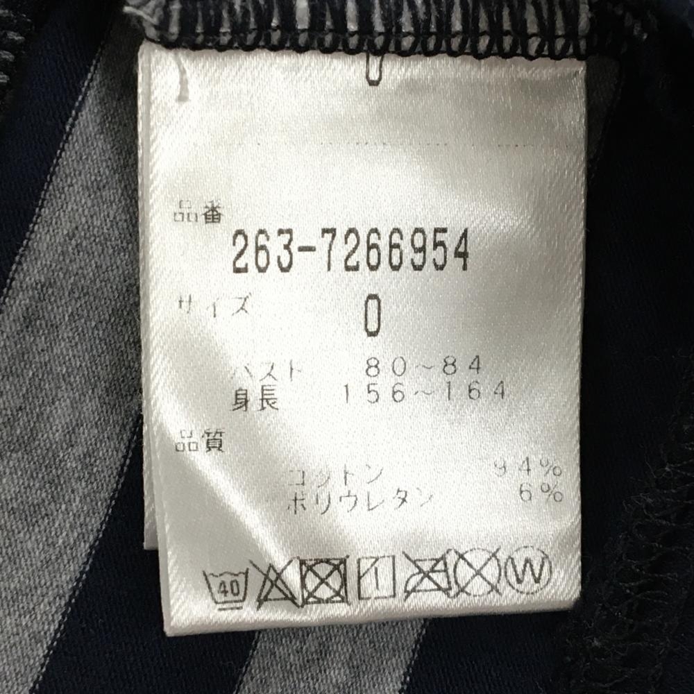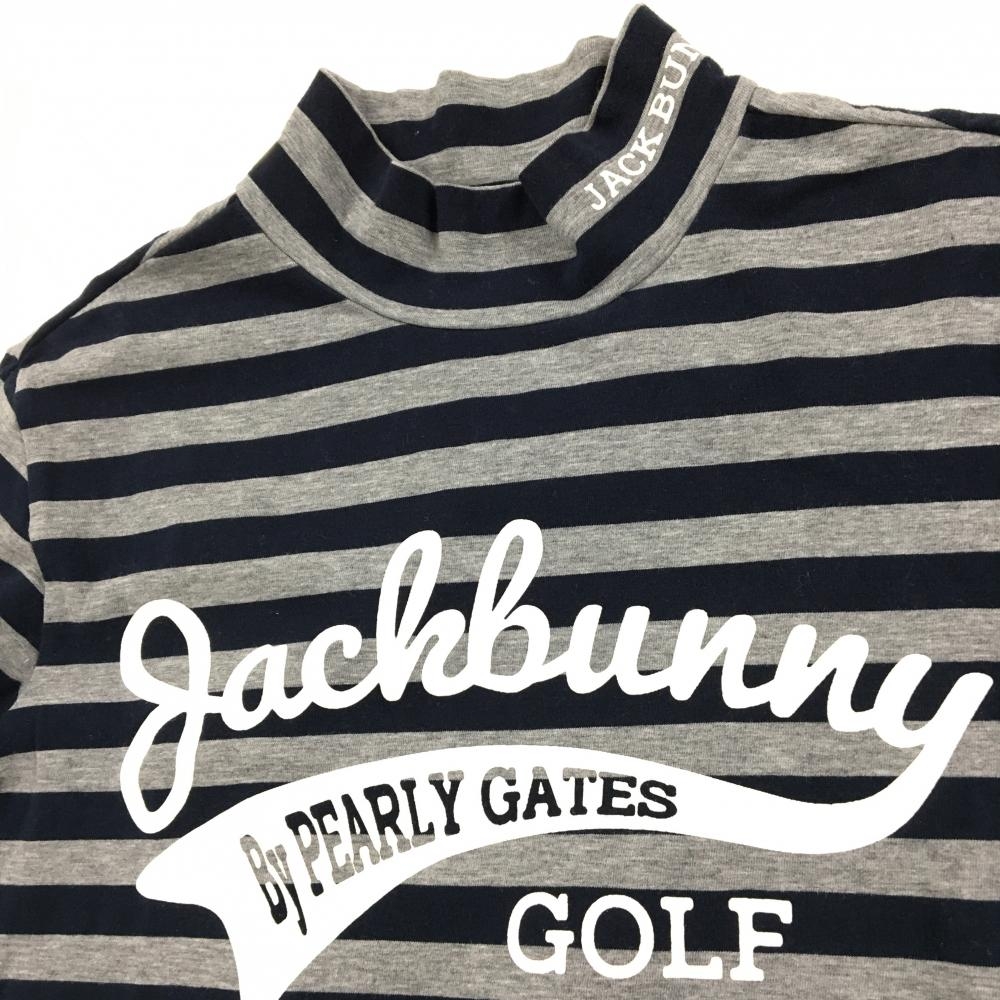 【超美品】ジャックバニー 長袖ハイネックシャツ ネイビー×グレー ボーダー ロゴ白 ストレッチ レディース 0(S) ゴルフウェア Jack Bunny
