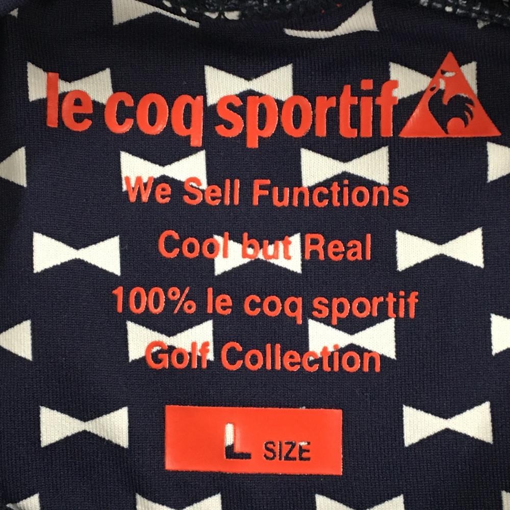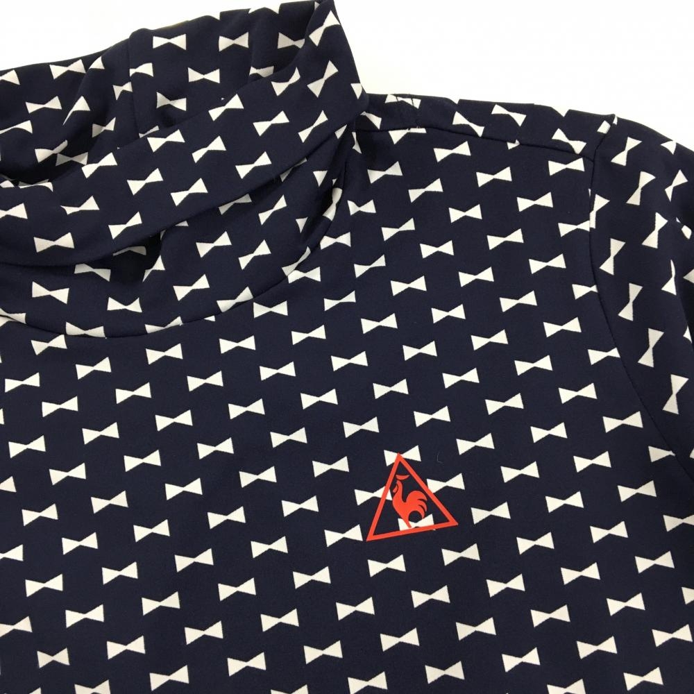 【超美品】ルコック 長袖タートルネックシャツ ネイビー×白 リボン総柄 ストレッチ レディース L ゴルフウェア le coq sportif