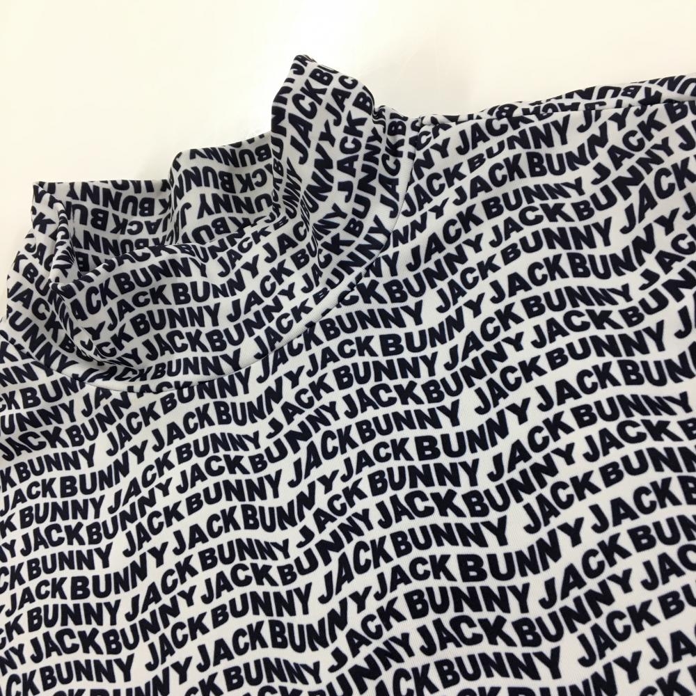 【超美品】ジャックバニー 長袖ハイネックシャツ 白×ネイビー ロゴ総柄 インナーシャツ レディース 0(S) ゴルフウェア Jack Bunny