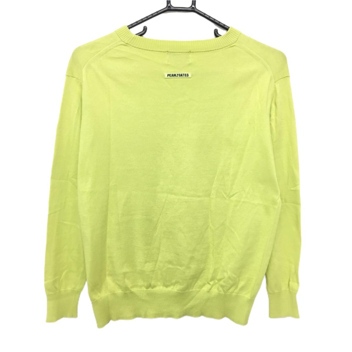 【美品】パーリーゲイツ セーター ライトグリーン コットン100% ワッペン レディース 0(S) ゴルフウェア PEARLY GATES