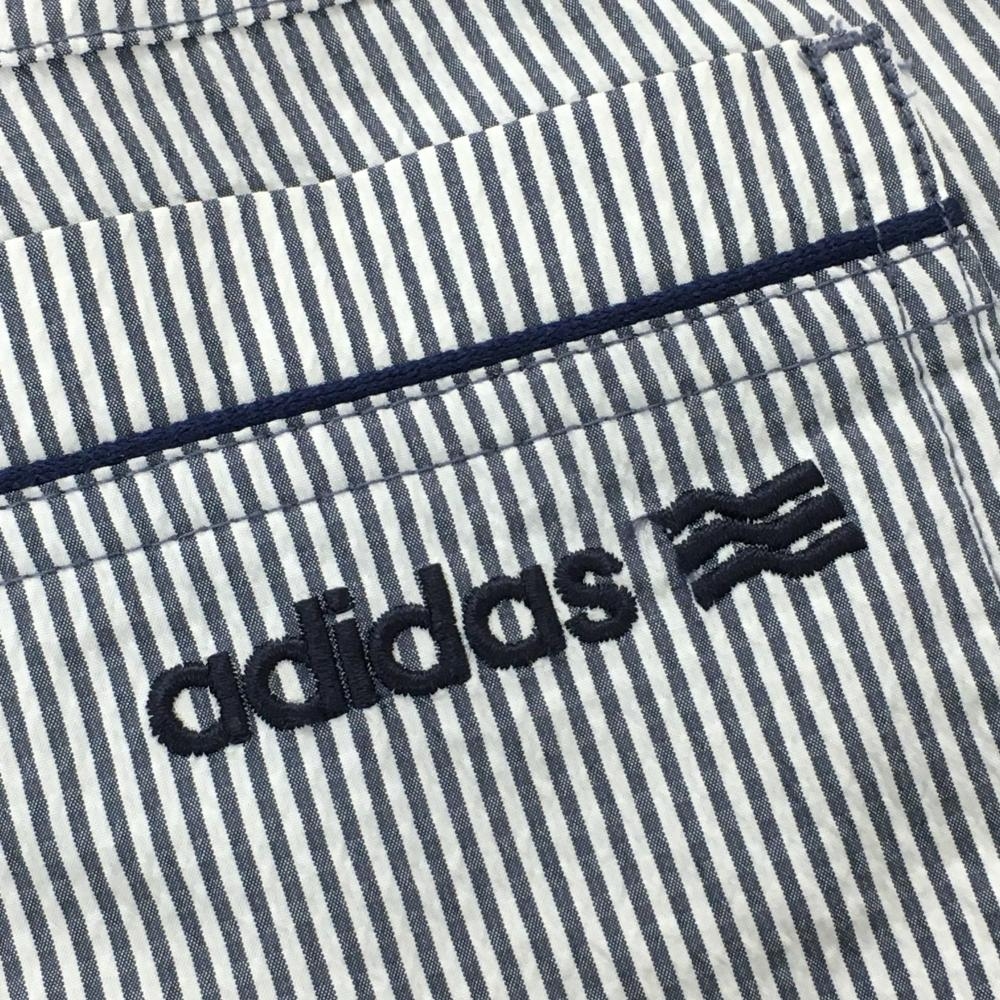 アディダス パンツ 白×ネイビー ストライプ柄 バックロゴ メンズ 88 ゴルフウェア adidas