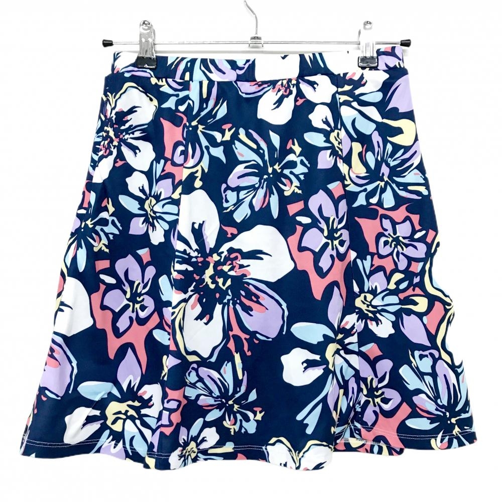 【美品】モントレークラブ スカート ネイビー×白×ライトブルー 花柄 内側インナーパンツ レディース XS ゴルフウェア Monterey club