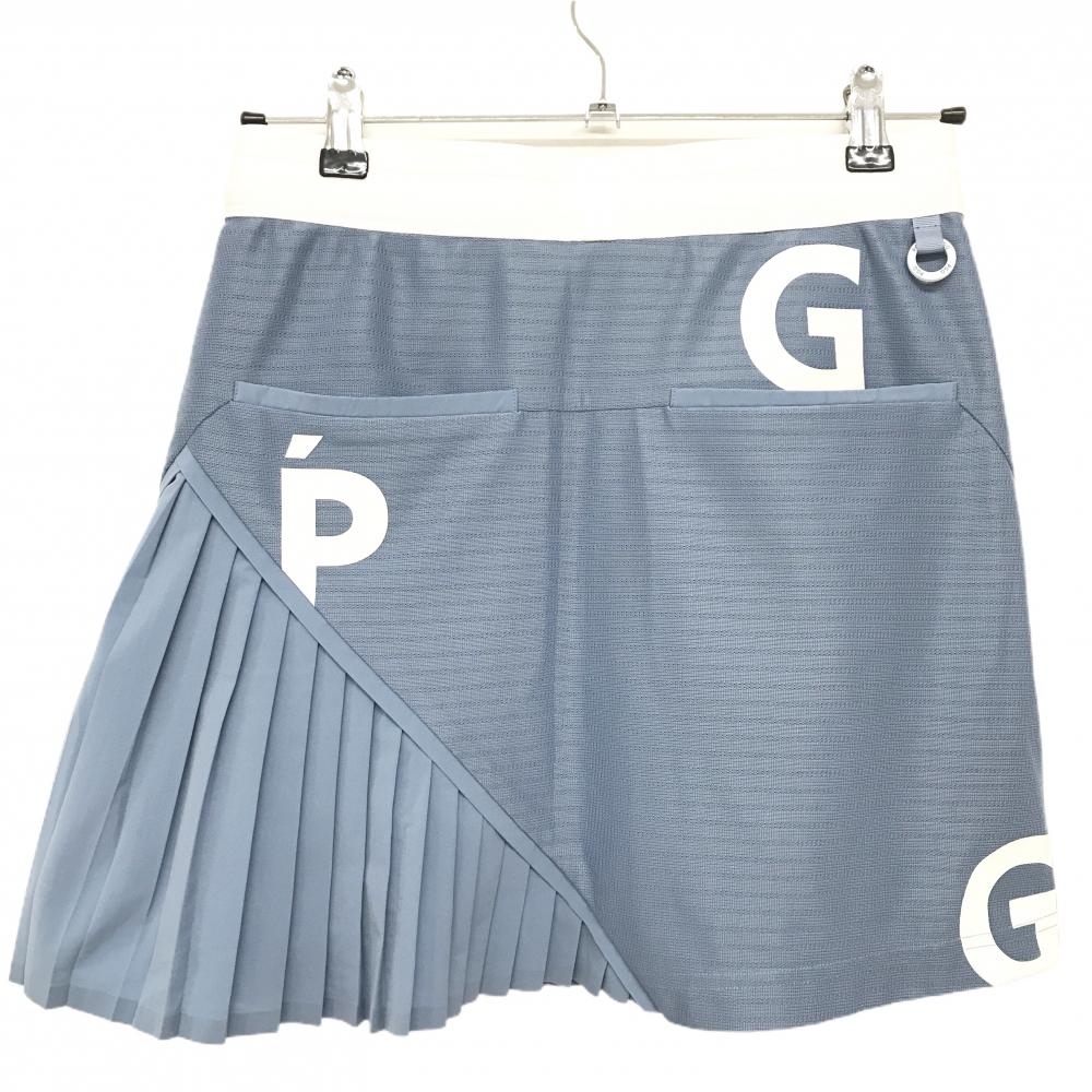 【超美品】PGGパーリーゲイツ スカート ブルーグレー×白 メッシュ裏地 ウエストゴム レディース 0(S) ゴルフウェア PEARLY GATES