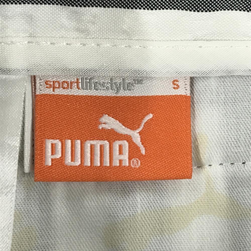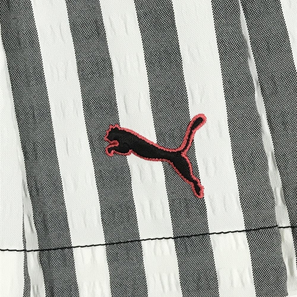 【超美品】プーマ スカート 白×グレー ストライプ サッカー生地 ロゴ刺しゅう レディース S ゴルフウェア PUMA