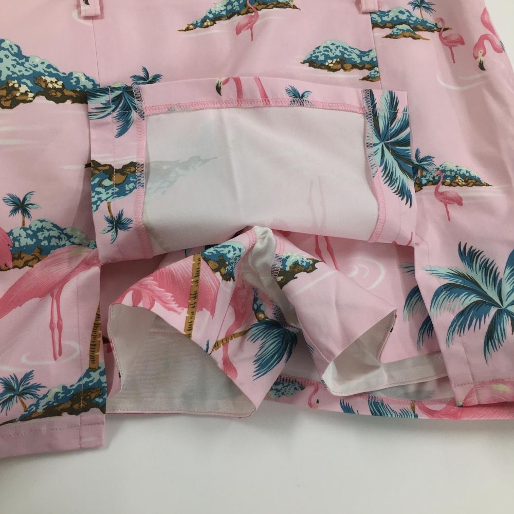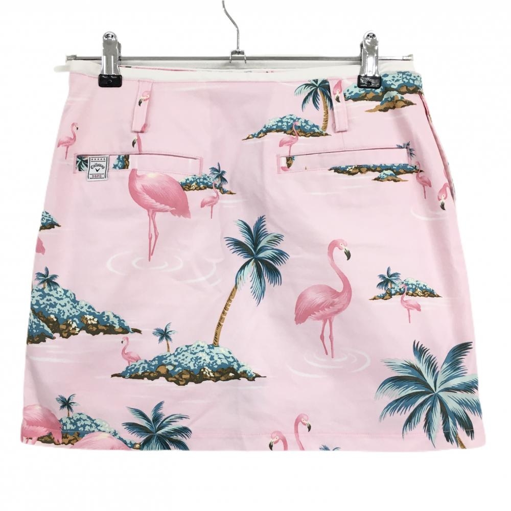 【美品】 キャロウェイ スカート ピンク×グリーン フラミンゴ柄 裾スリット 内側インナーパンツ レディース S ゴルフウェア Callaway