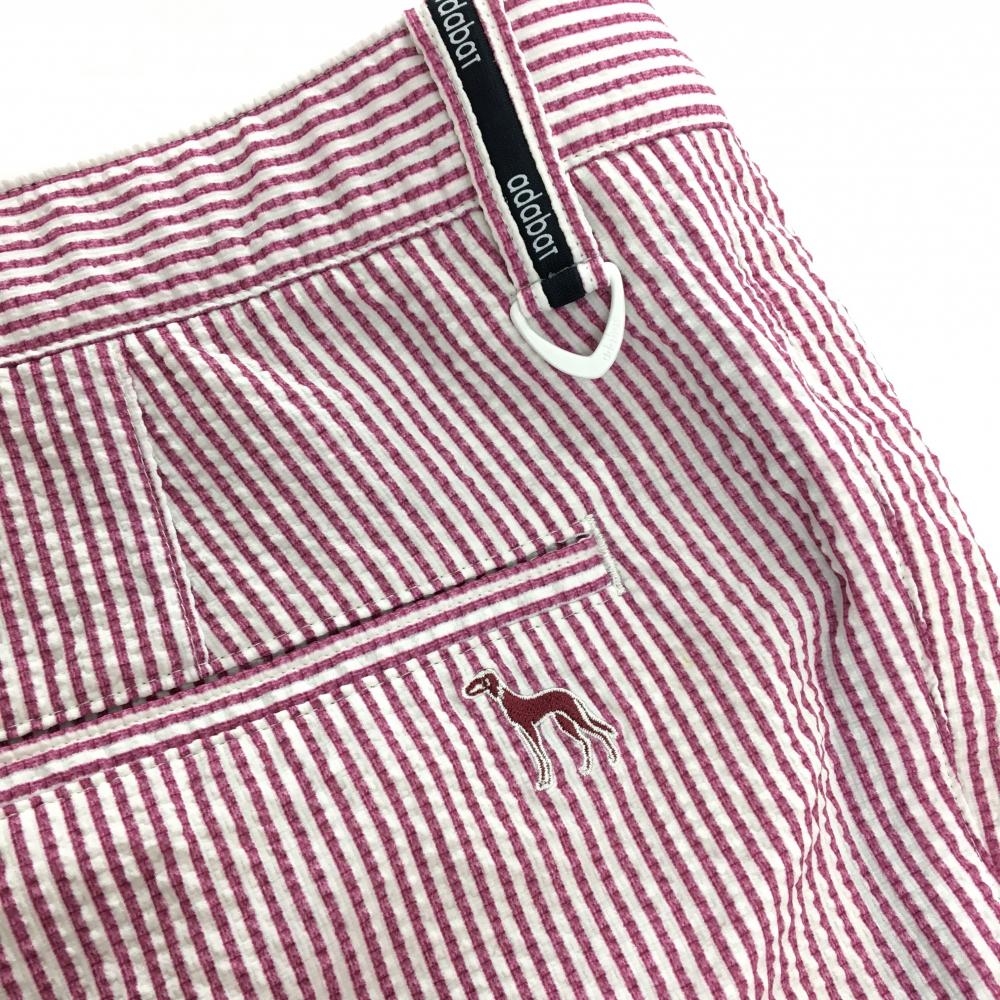 【美品】アダバット パンツ 白×レッド系 ストライプ サッカー生地 ストレッチ メンズ 52(2XL) ゴルフウェア adabat