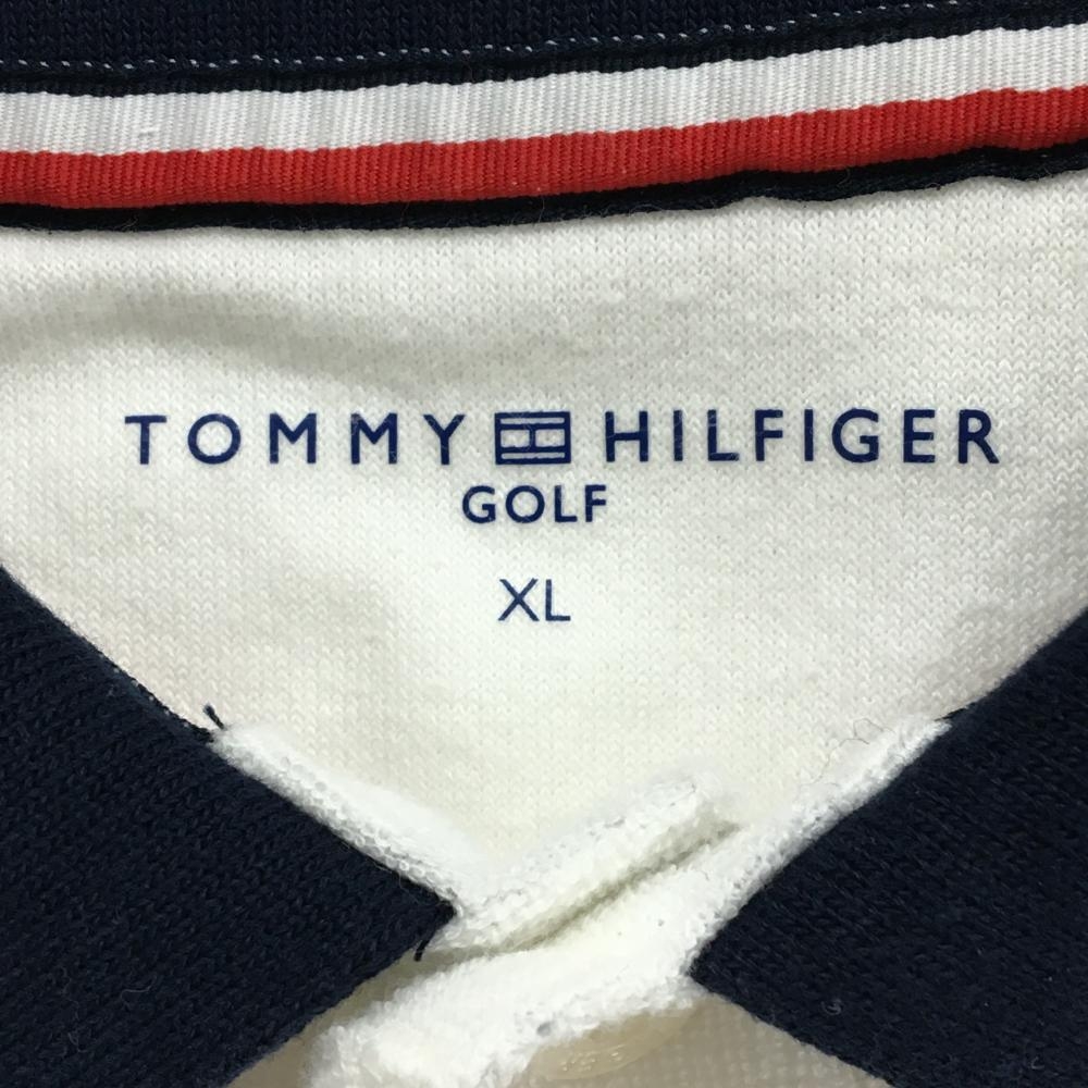 トミーヒルフィガー 半袖ポロシャツ 白×ネイビー パイル地 胸ポケット メンズ XL ゴルフウェア Tommy Hilfiger Golf