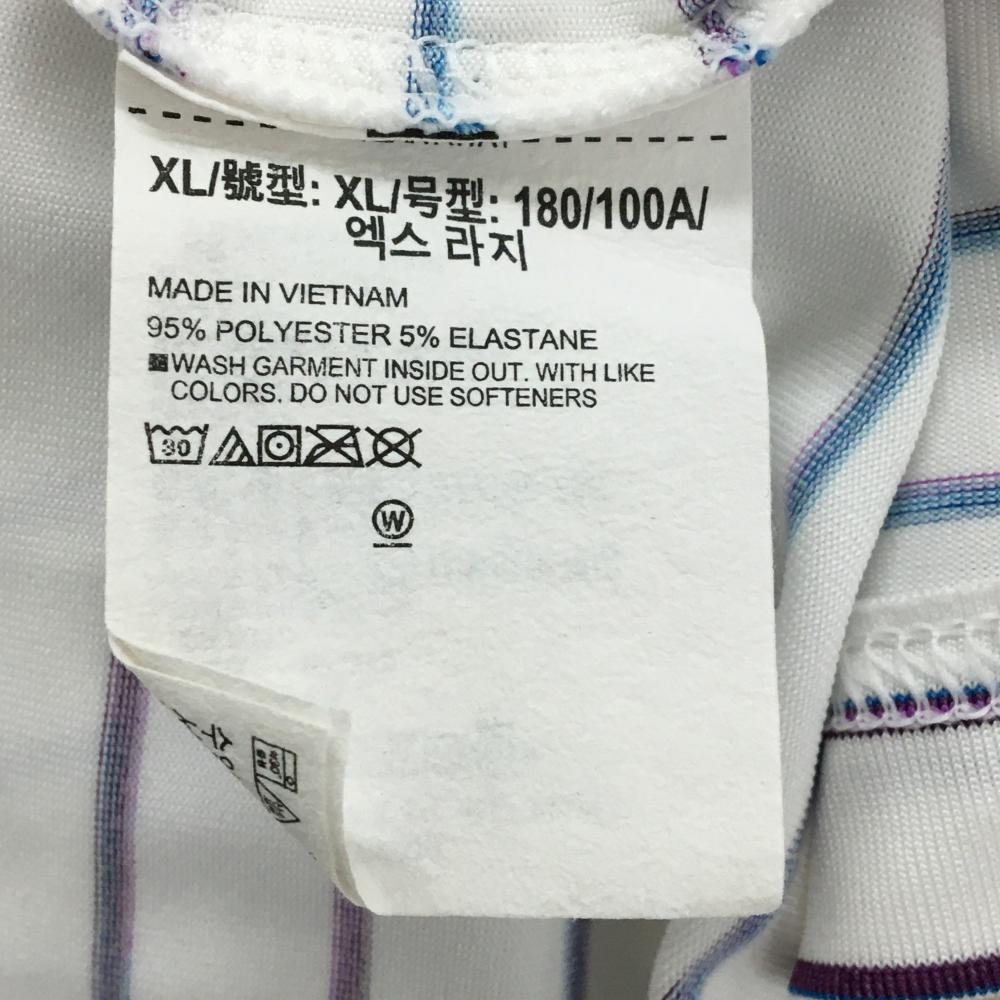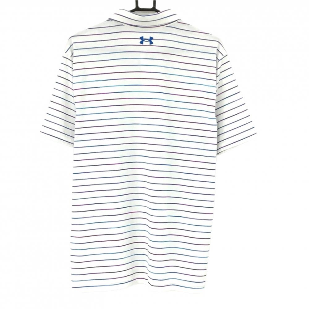 【超美品】アンダーアーマー 半袖ポロシャツ 白×ブルー×パープル ボーダー メンズ XL ゴルフウェア UNDER ARMOUR