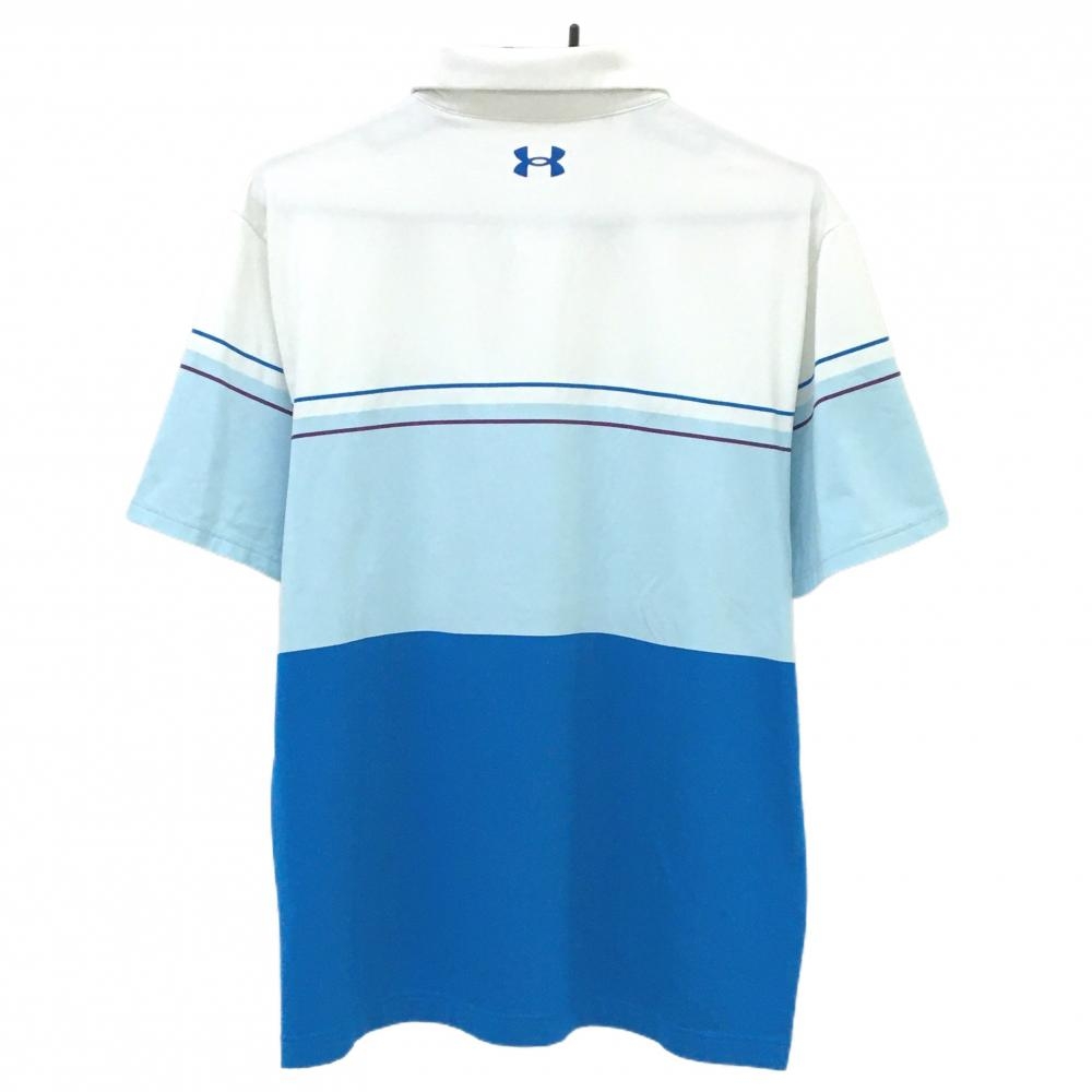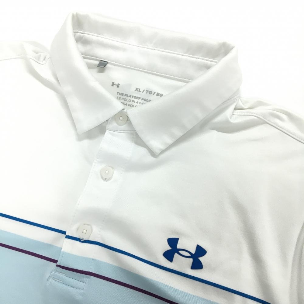 【美品】アンダーアーマー 半袖ポロシャツ 白×ブルー 胸ロゴプリント メンズ XL ゴルフウェア UNDER ARMOUR