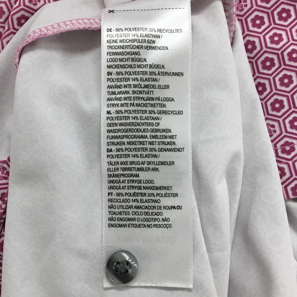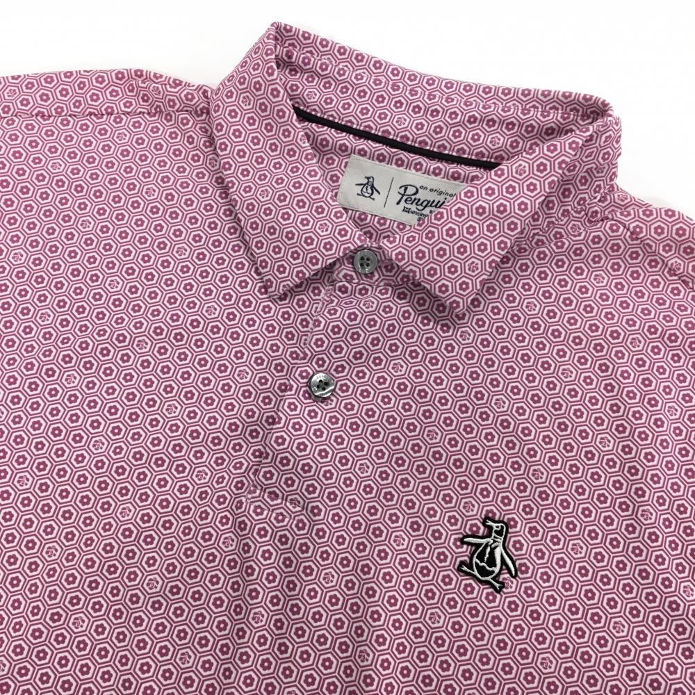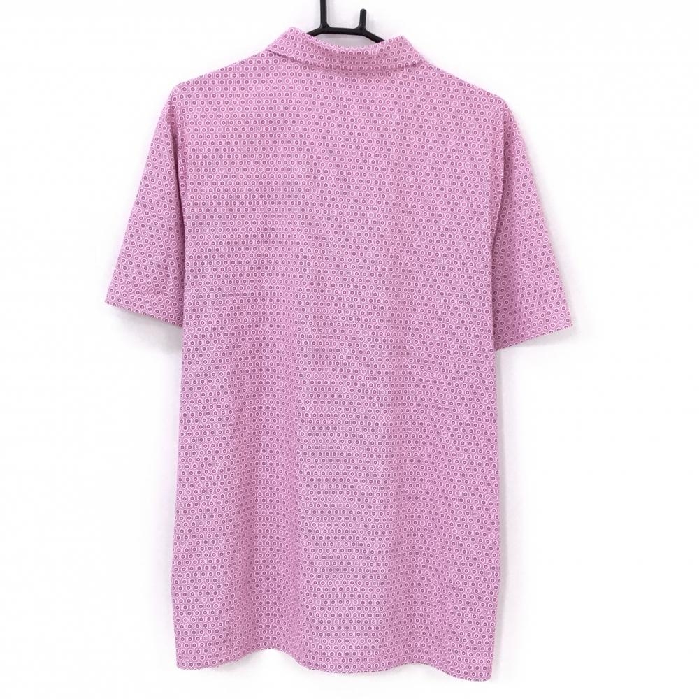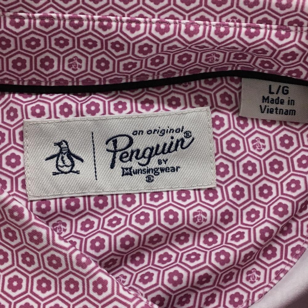 【超美品】マンシングウェア 半袖ポロシャツ ピンク×白 花小紋柄 ワッペン メンズ L/G ゴルフウェア Munsingwear