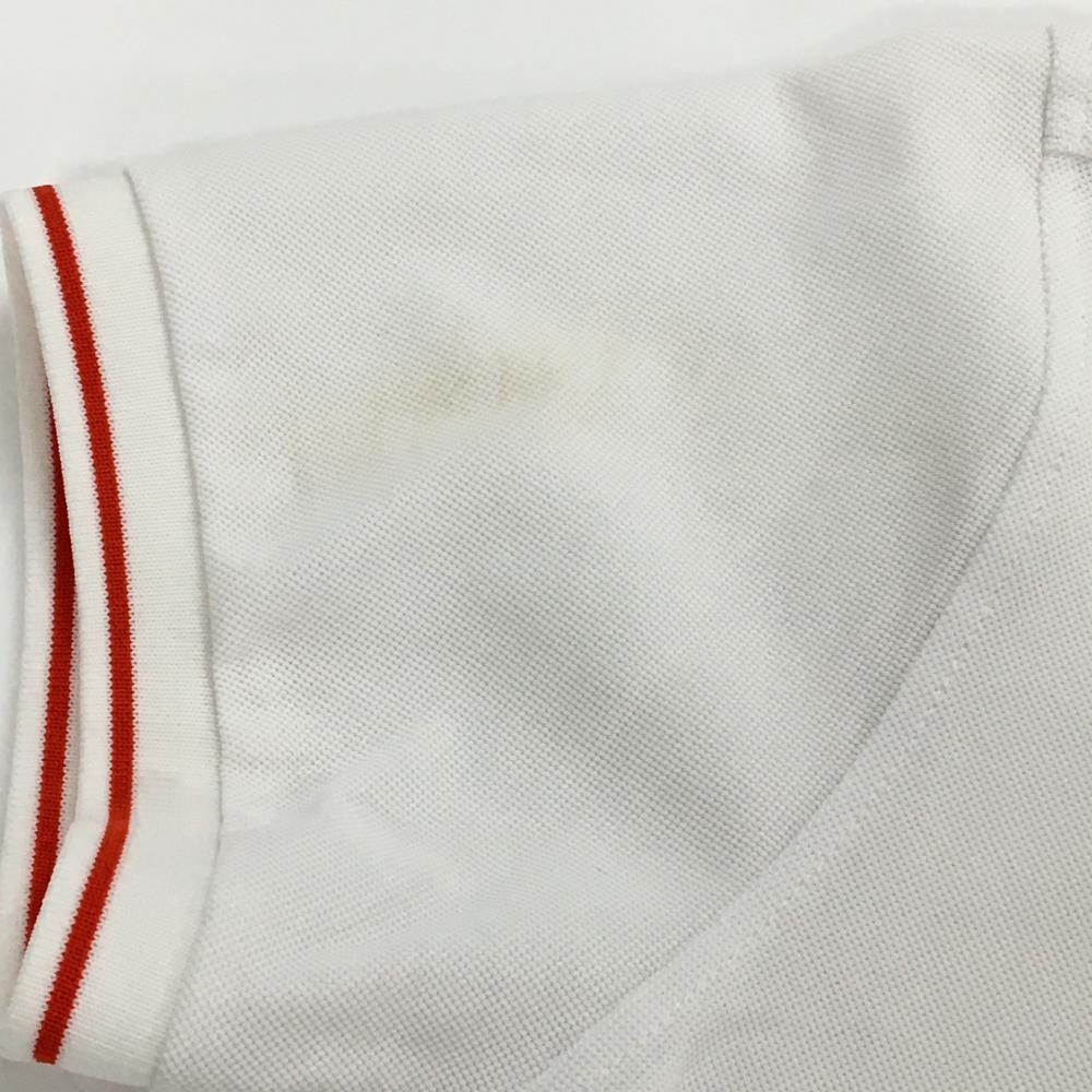 ルコックゴルフ 半袖ポロシャツ 白×レッド 襟縁・袖口ライン プリント レディース L ゴルフウェア le coq sportif