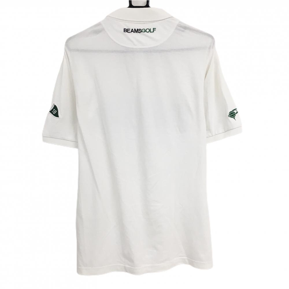 ビームスゴルフ 半袖ポロシャツ 白×グリーン ワッペン メンズ M ゴルフウェア BEAMS GOLF