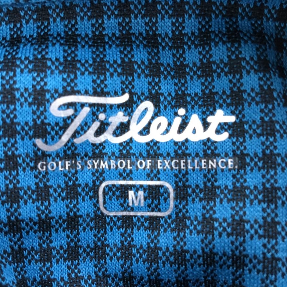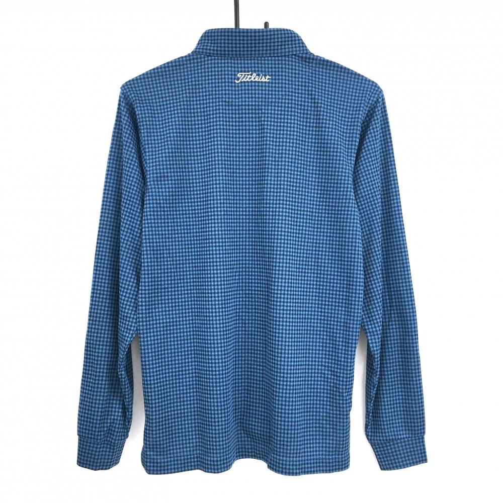 【超美品】タイトリスト 長袖ポロシャツ ブルー系×黒 チェック ボタンダウン メンズ M ゴルフウェア TITLEIST