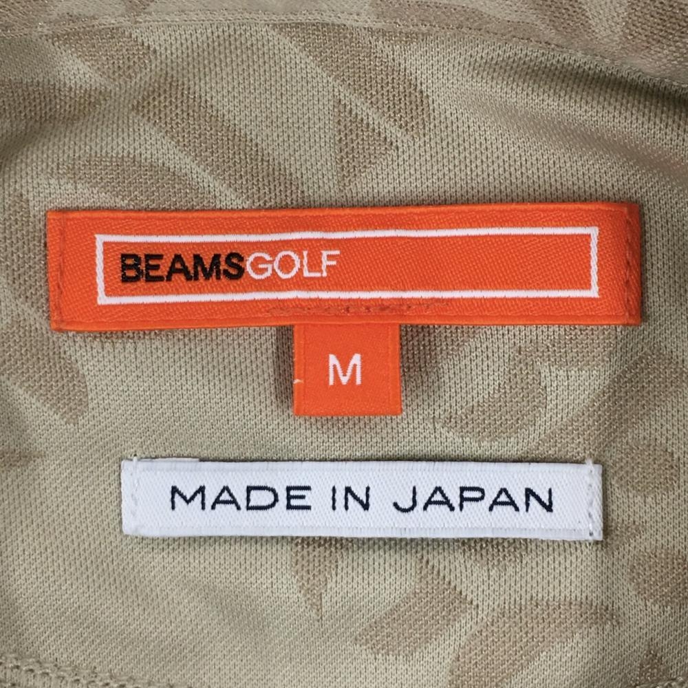 【美品】ビームスゴルフ 半袖ポロシャツ ベージュ ロゴ総柄 メンズ M ゴルフウェア BEAMS GOLF