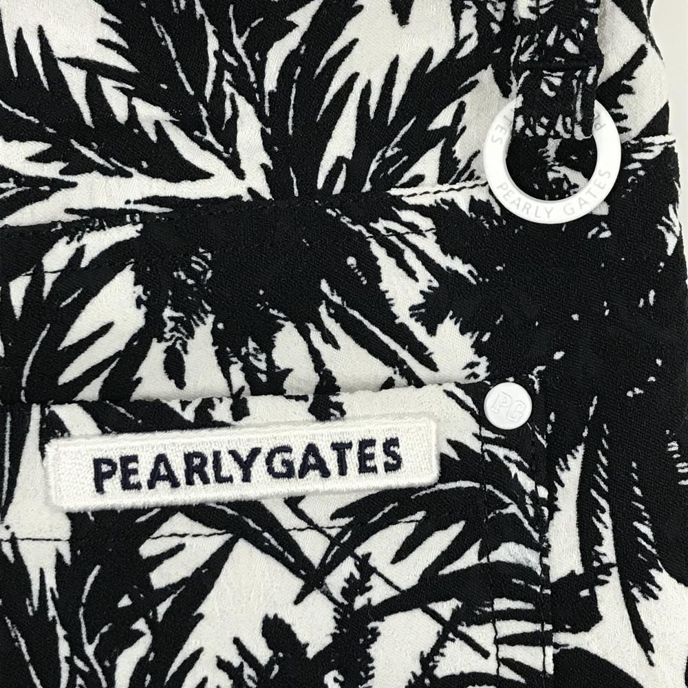 【超美品】パーリーゲイツ パンツ 白×黒 リーフ柄 ストレッチ レディース 1(M) ゴルフウェア PEARLY GATES