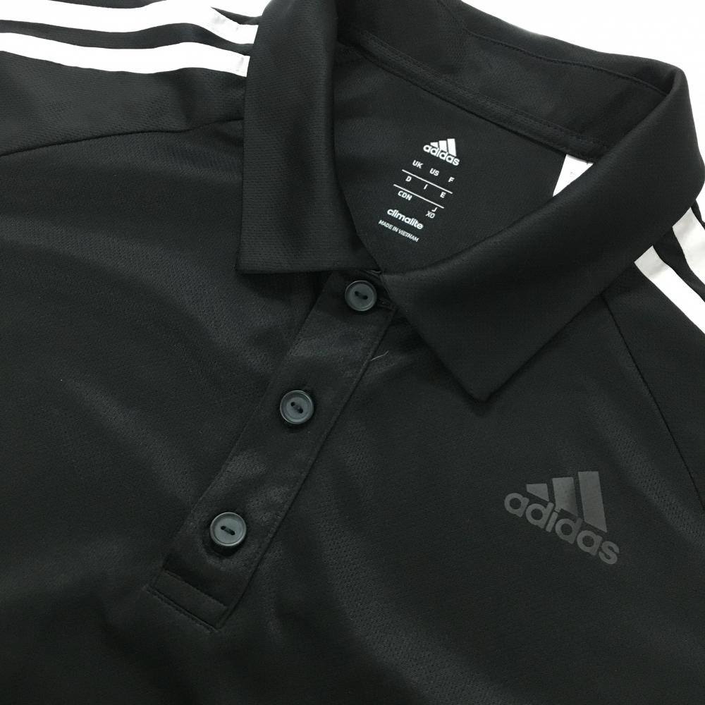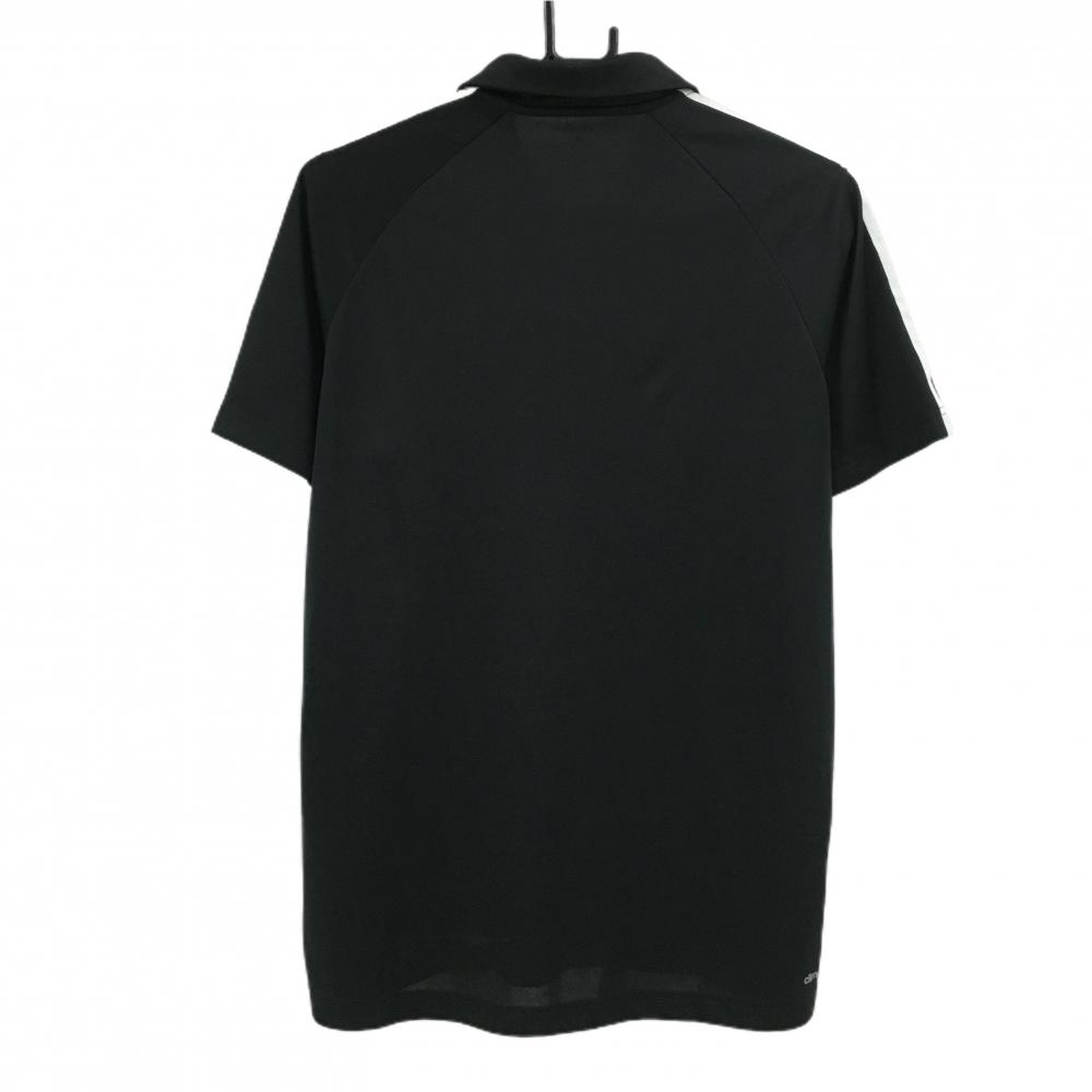 【美品】アディダス 半袖ポロシャツ 黒×白 肩3ライン ロゴプリント メンズ XO ゴルフウェア adidas