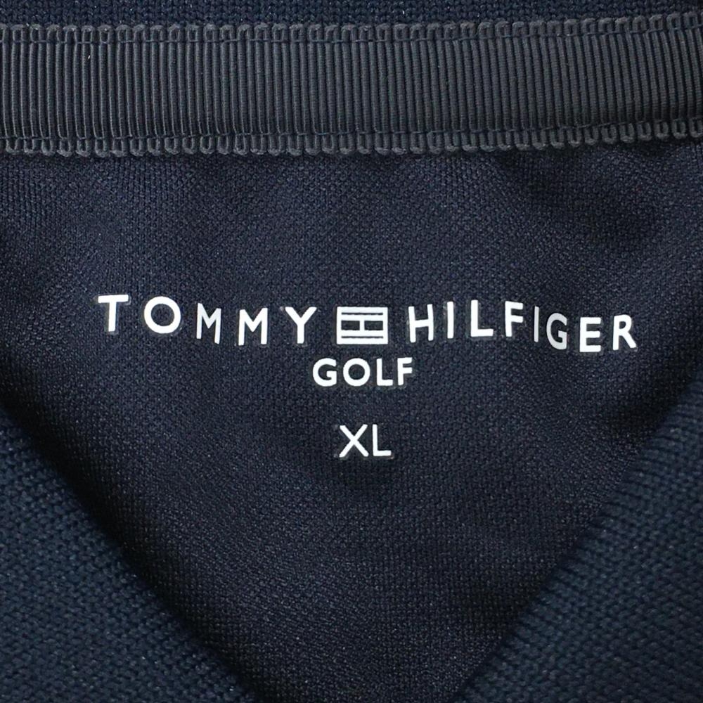 【超美品】トミーヒルフィガー 半袖ポロシャツ ネイビー 総柄地模様 メンズ XL ゴルフウェア Tommy Hilfiger Golf