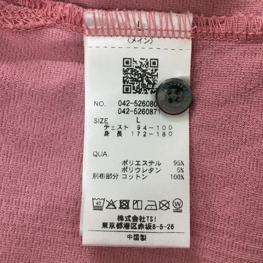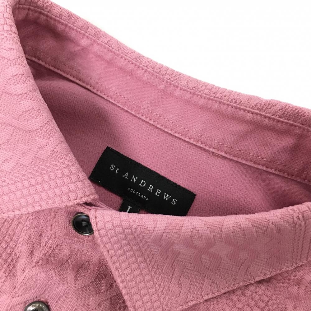 【美品】セントアンドリュース 半袖ポロシャツ ピンク 織生地 ストレッチ メンズ L ゴルフウェア 2025年モデル St ANDREWS