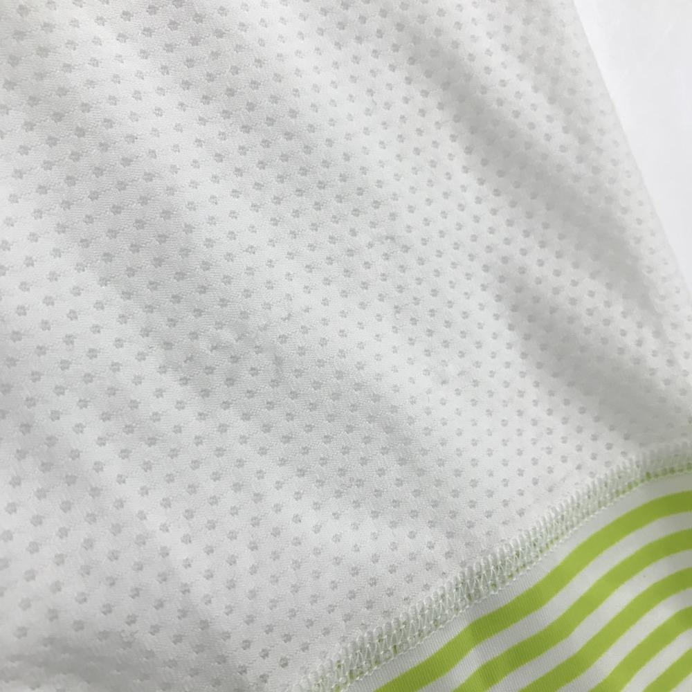 【超美品】ルコックゴルフ レギンス 白×ライトグリーン ボーター 一部メッシュ スパッツ レディース M ゴルフウェア le coq sportif