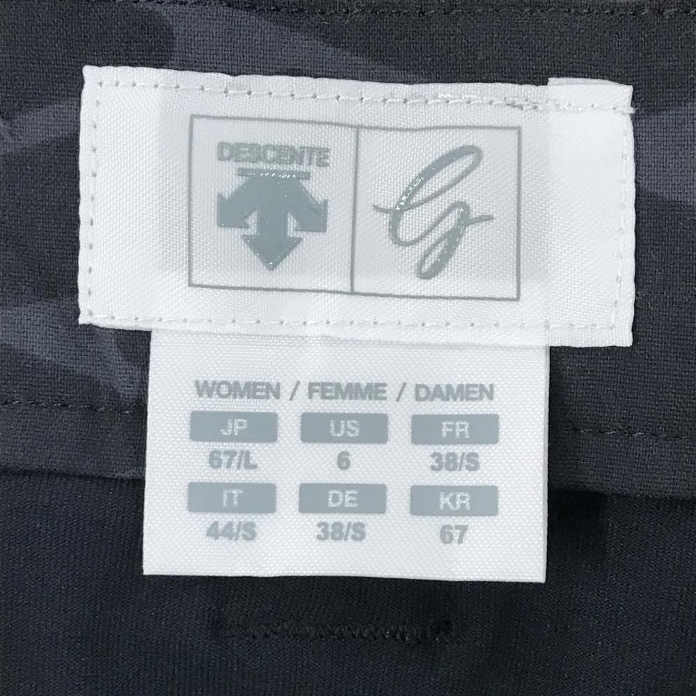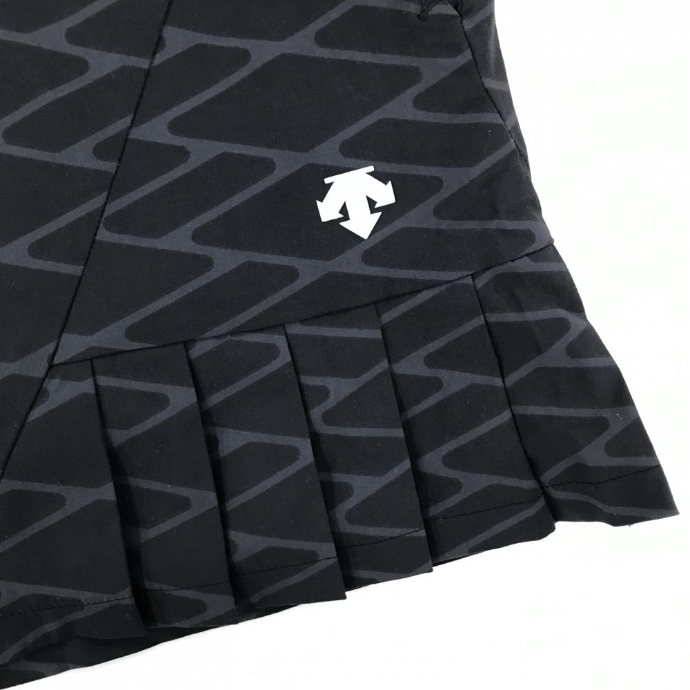 【美品】デサントゴルフ スカート 黒×グレー 総柄 立体ロゴ 一部プリーツ 中田英寿 レディース 67/L ゴルフウェア DESCENTE