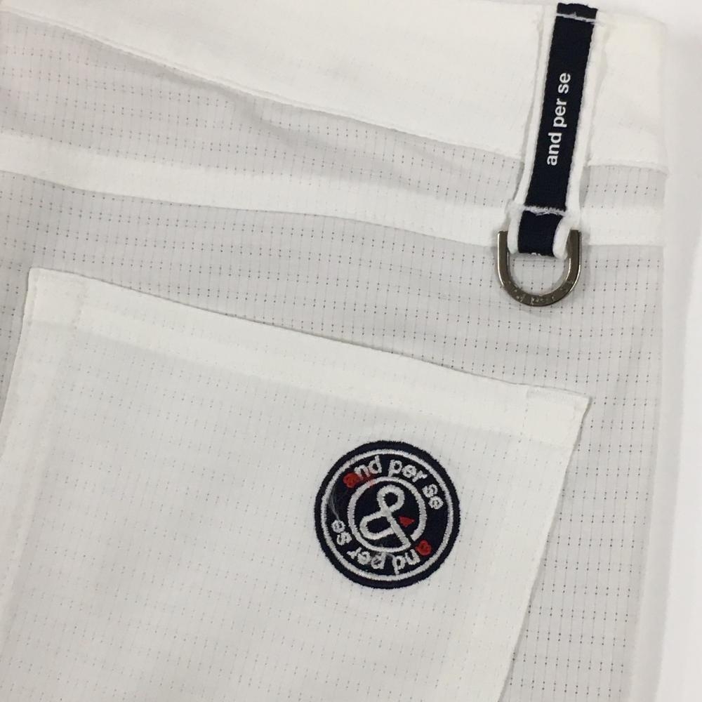 アンパスィ パンツ 白×ネイビー メッシュ調 ロゴ刺しゅう レディース M ゴルフウェア and per se