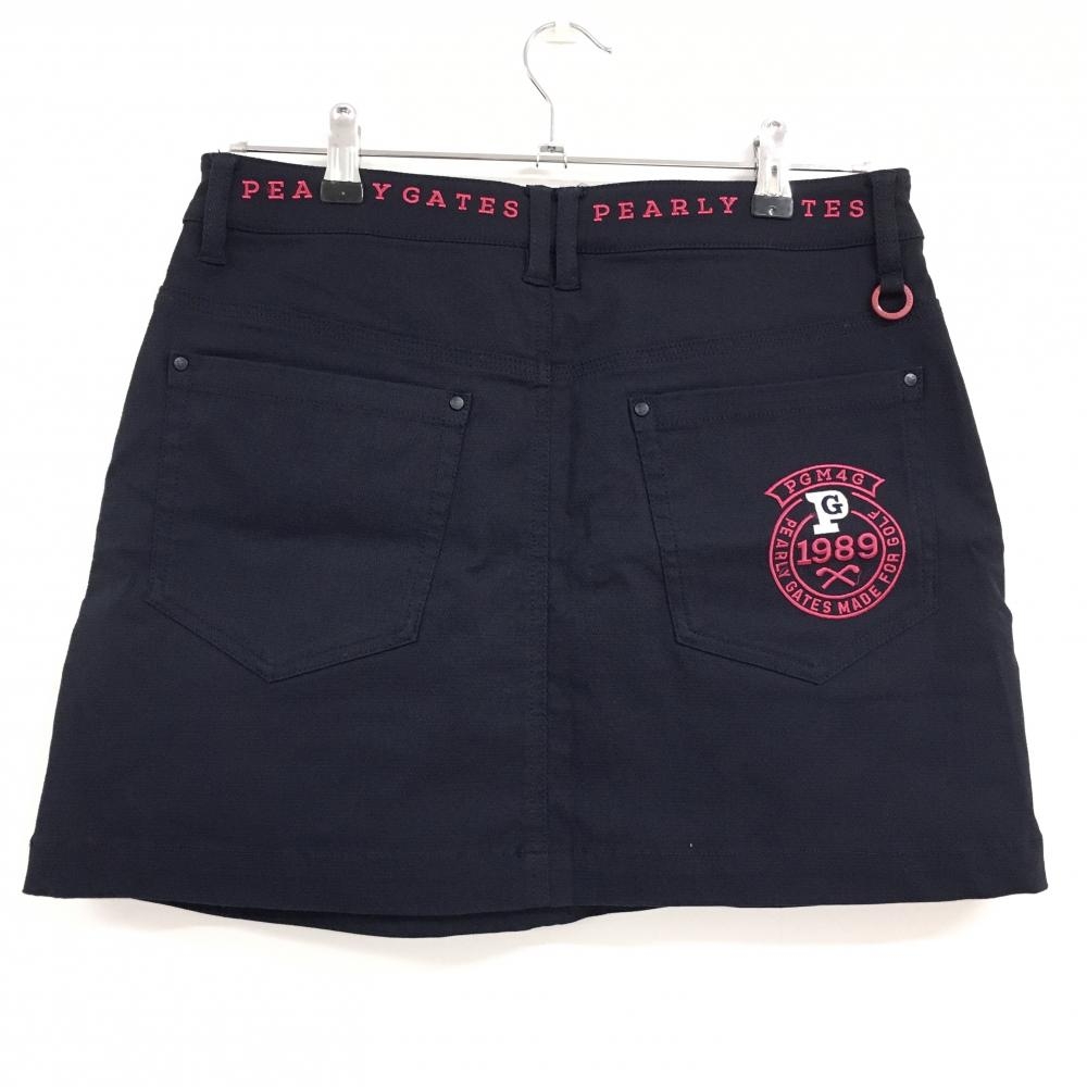 【美品】パーリーゲイツ スカート ネイビー ロゴ刺しゅうピンク 内側30周年 レディース 2(L) ゴルフウェア PEARLY GATES