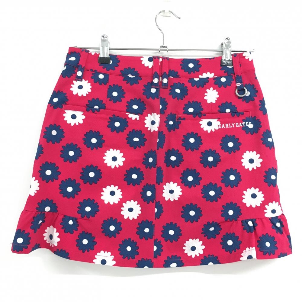 【超美品】パーリーゲイツ スカート レッド系×ネイビー×白 花柄 ストレッチ 30周年 レディース 0(S) ゴルフウェア PEARLY GATES
