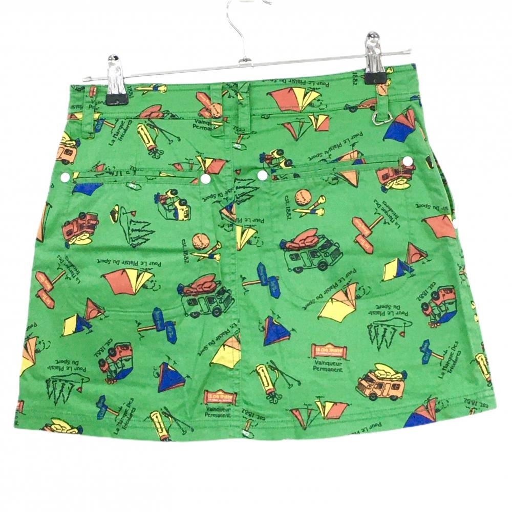 ルコックゴルフ スカート グリーン×黒 総柄 ストレッチ 内側インナーパンツ レディース 9 ゴルフウェア le coq sportif