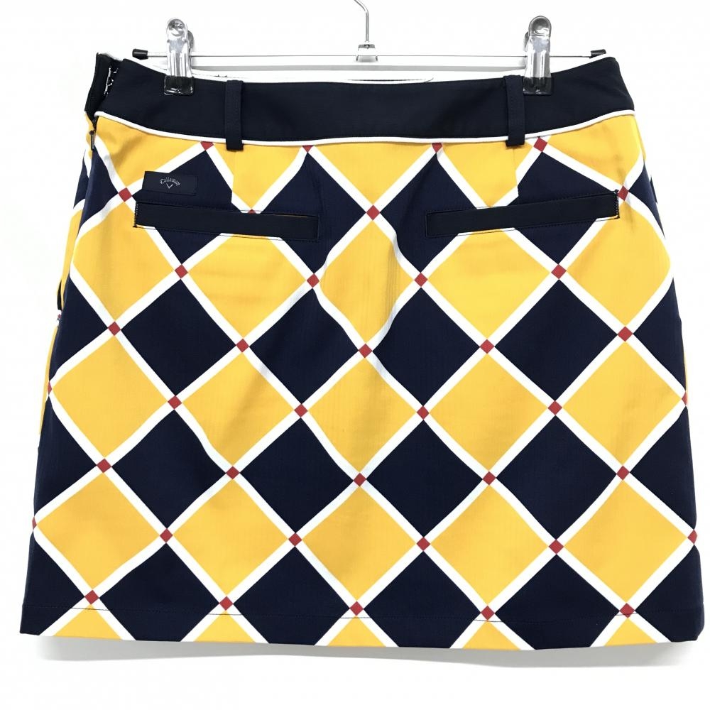 【超美品】キャロウェイ スカート ネイビー×イエロー スクエア総柄 ストレッチ レディース L ゴルフウェア Callaway