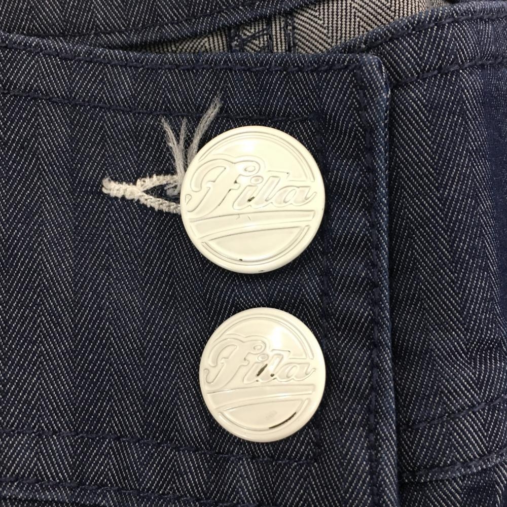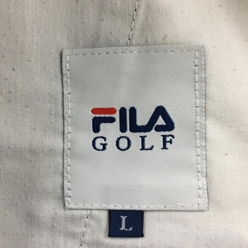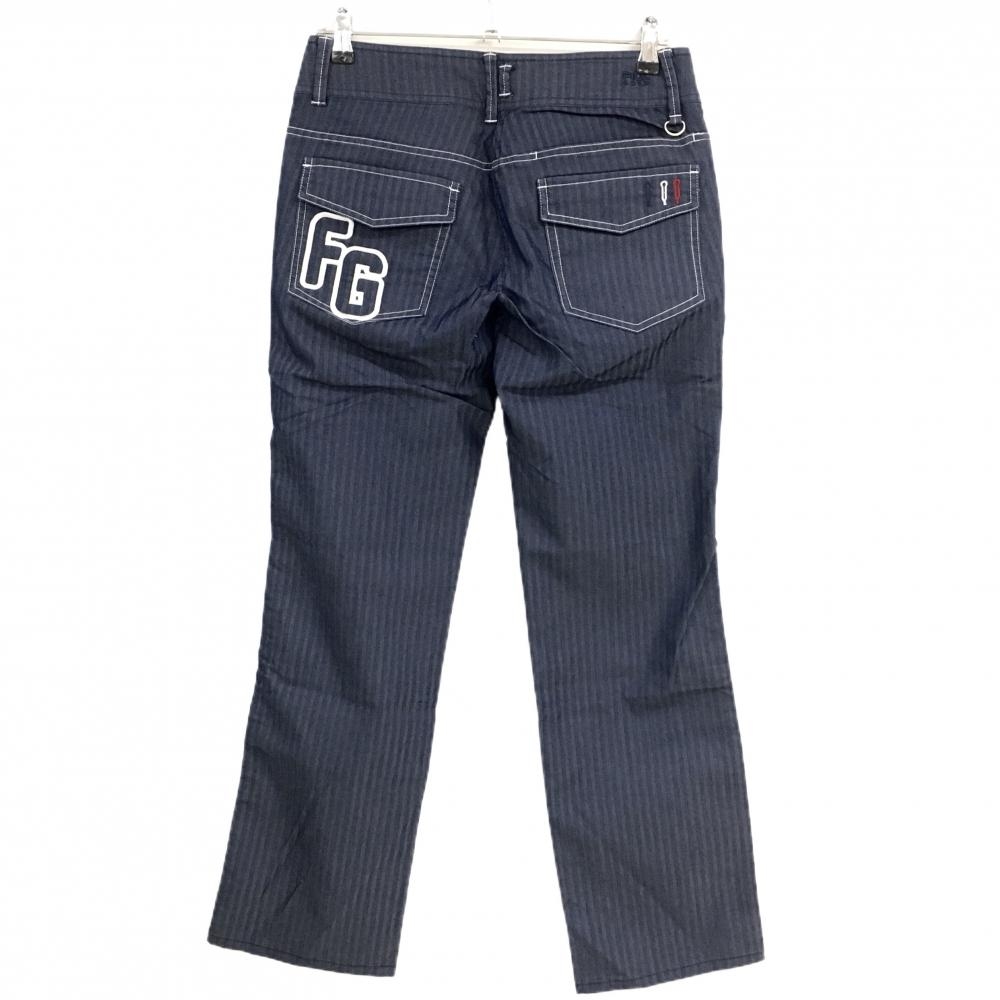 【美品】フィラゴルフ パンツ ネイビー×白 ステッチ ストライプ地模様 ステッチ レディース L ゴルフウェア FILA GOLF