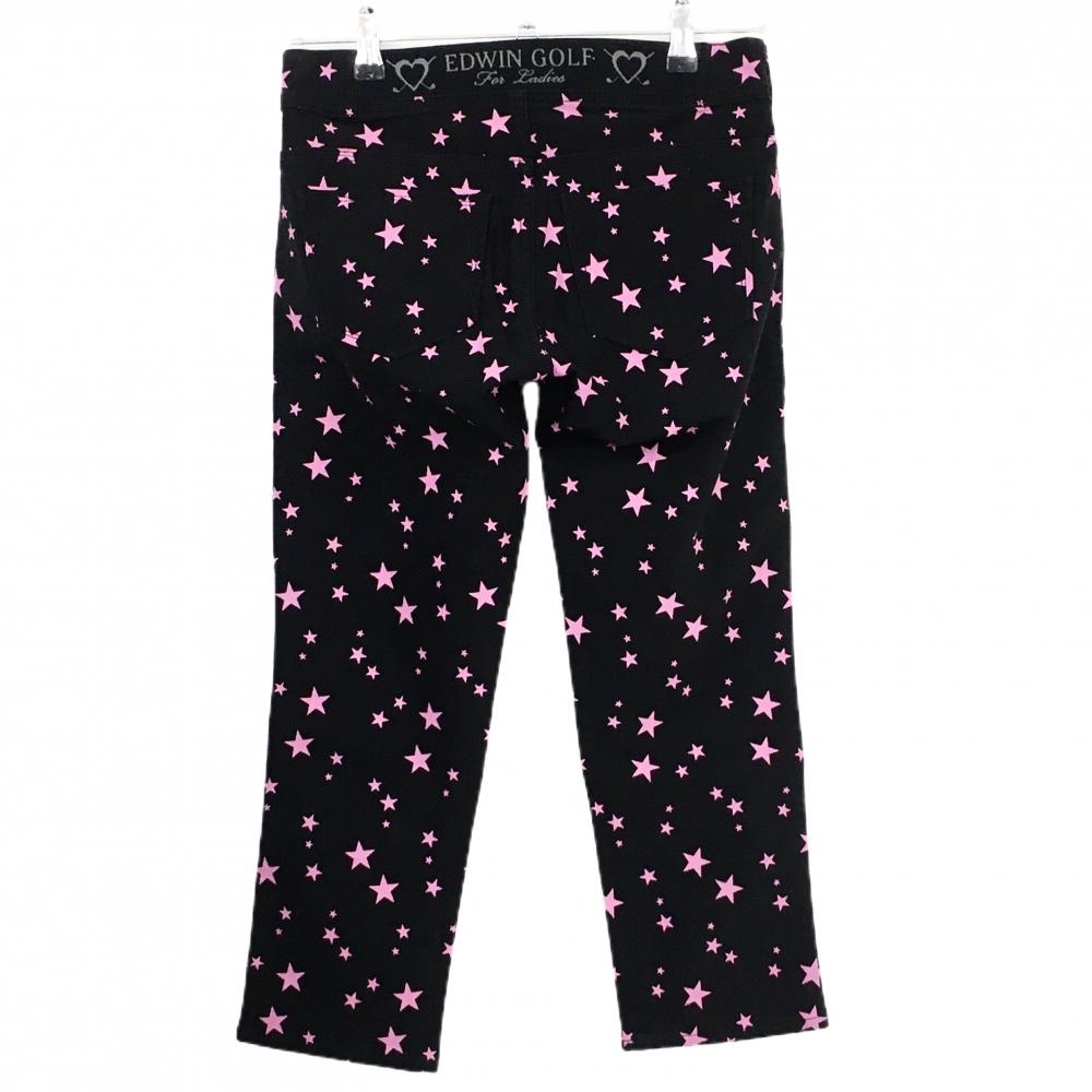 【美品】エドウィン 七分丈ストレッチパンツ 黒×ピンク 星総柄 ウエスト一部ゴム レディース M ゴルフウェア EDWIN GOLF