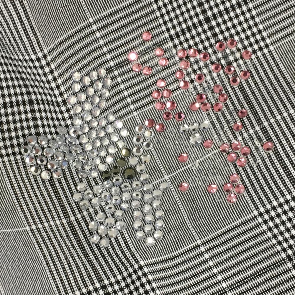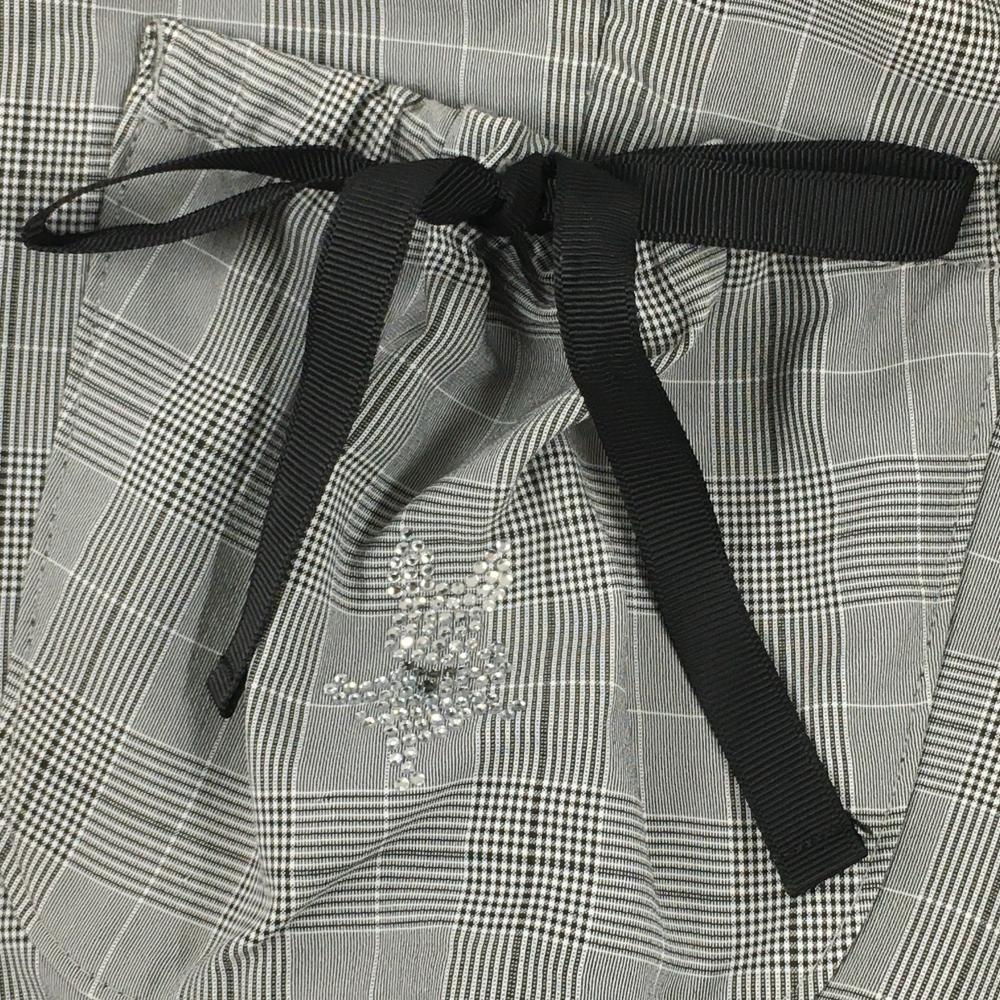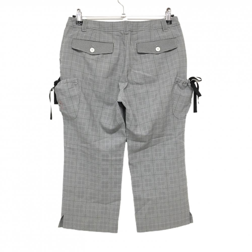 【美品】MUスポーツ 半端丈パンツ グレー×黒 チェック サイドポケット ラインストーン レディース 44(XL) ゴルフウェア M・U SPORTS
