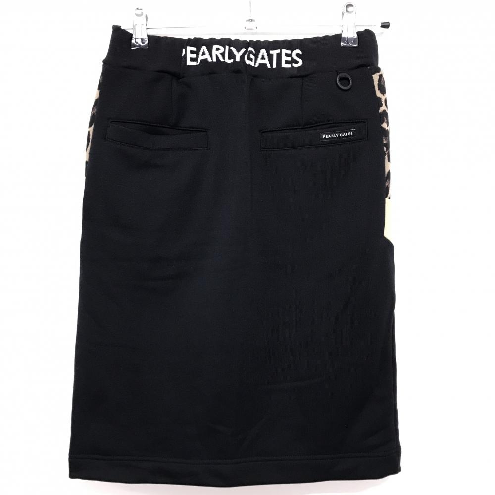 【超美品】パーリーゲイツ スカート 黒×ベージュ ポケット口レオパード柄 スウェット レディース 0(S) ゴルフウェア PEARLY GATES