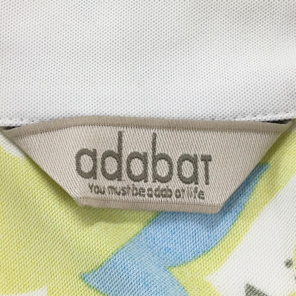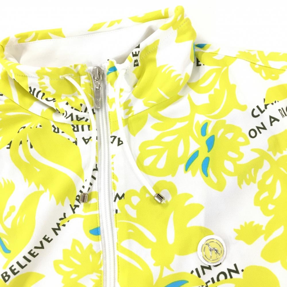 【美品】アダバット 半袖ハイネックワンピース 白×イエロー 花柄 フルジップ レディース 42(XL) ゴルフウェア adabat