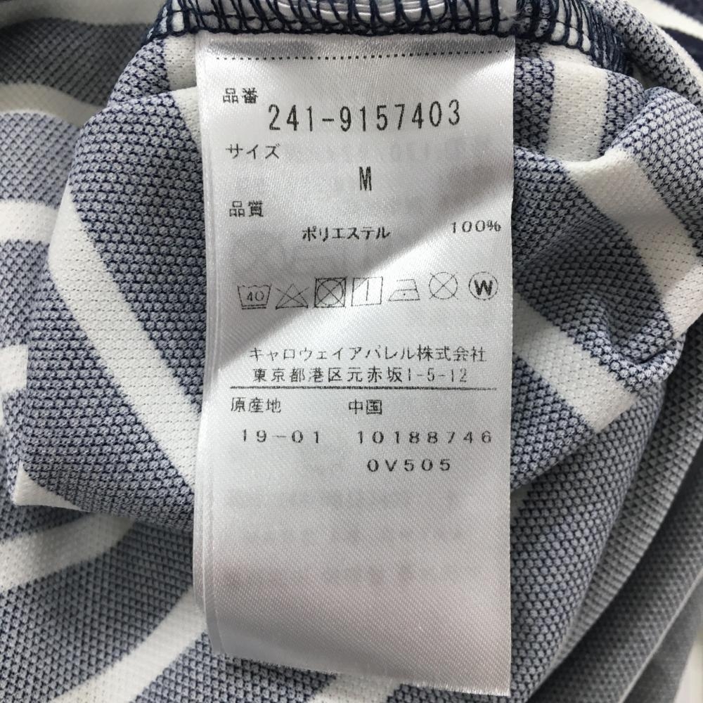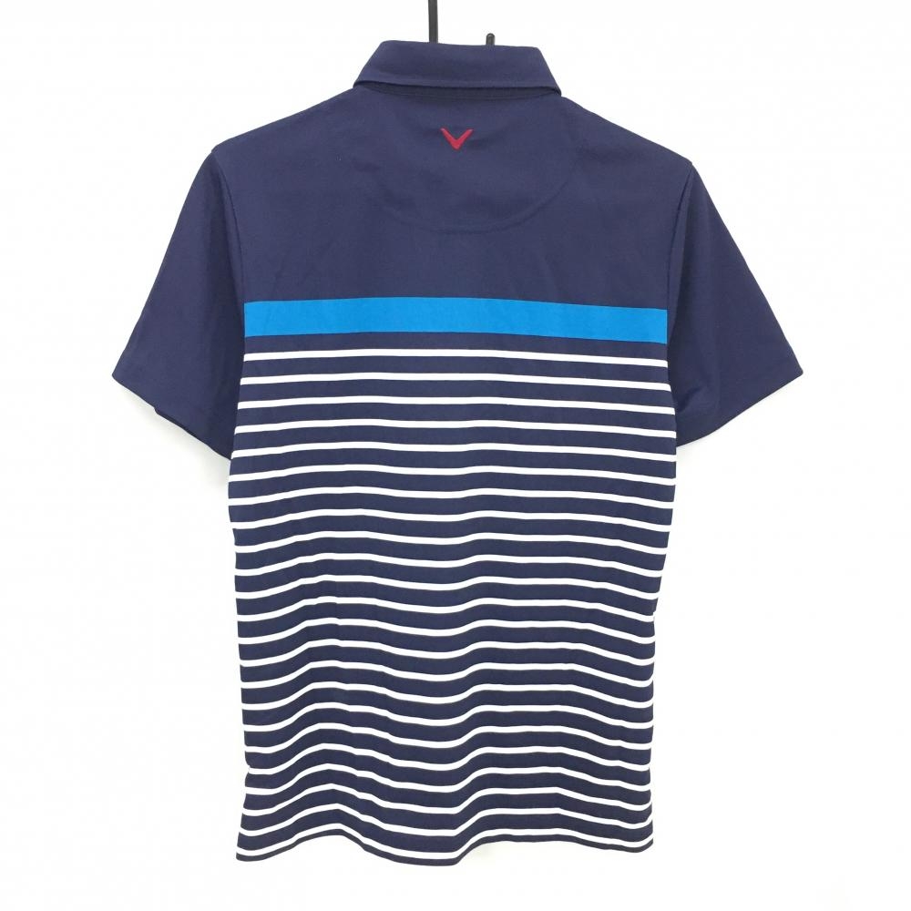 キャロウェイ 半袖ポロシャツ ネイビー×白 ボーダー ロゴ刺しゅう ボタンダウン メンズ M ゴルフウェア Callaway