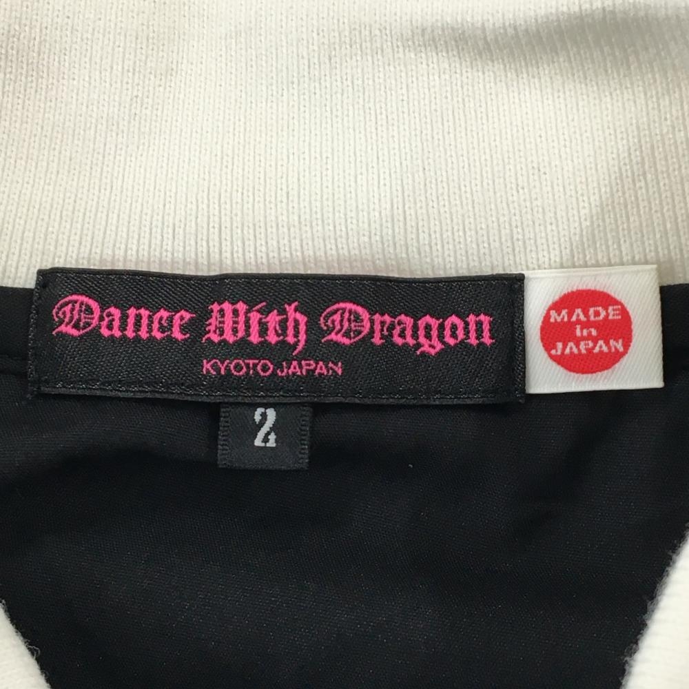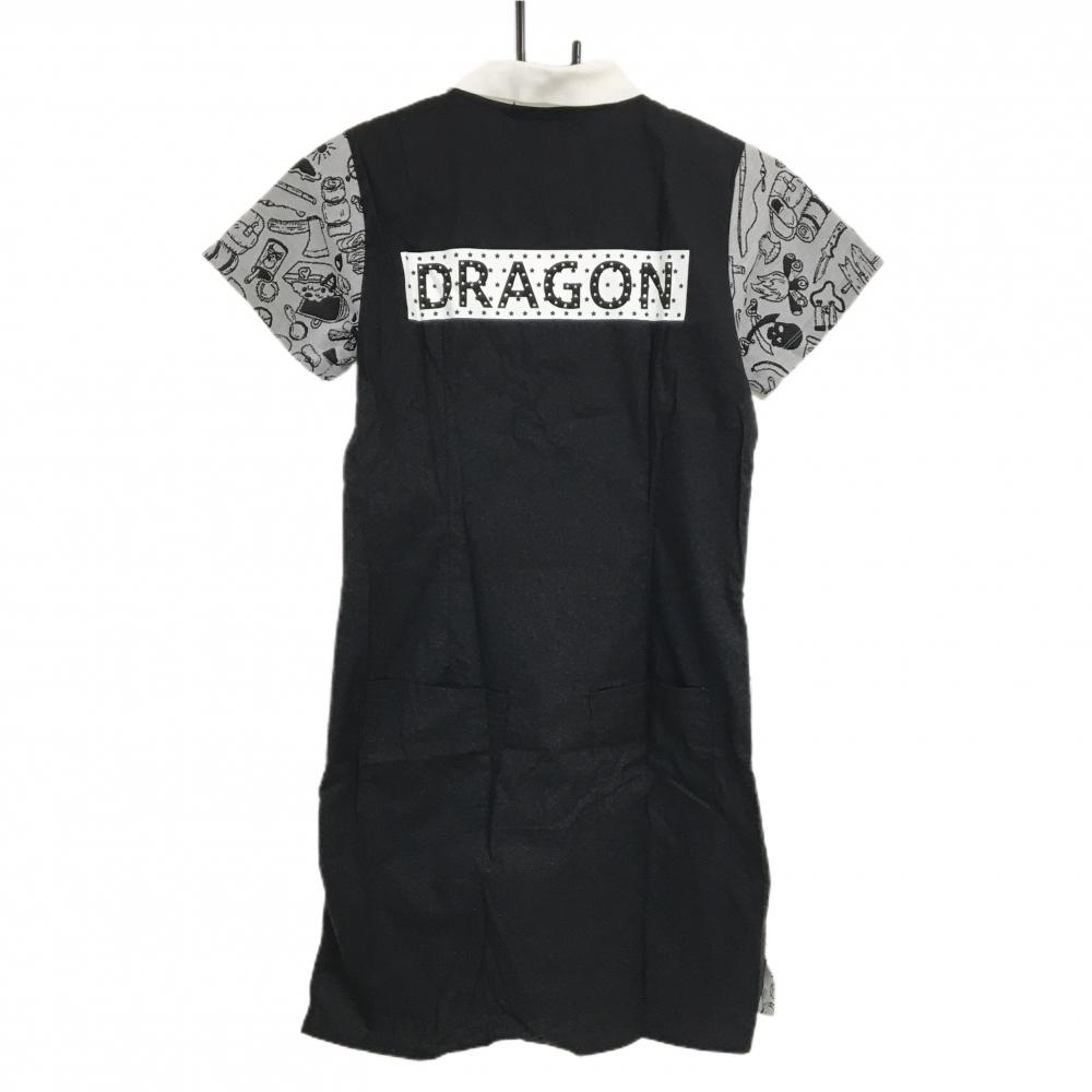 【美品】ダンスウィズドラゴン 半袖ポロワンピース 白×黒 前身ごろ・袖総柄 背面ロゴ レディース 2(M) ゴルフウェア Dance With Dragon