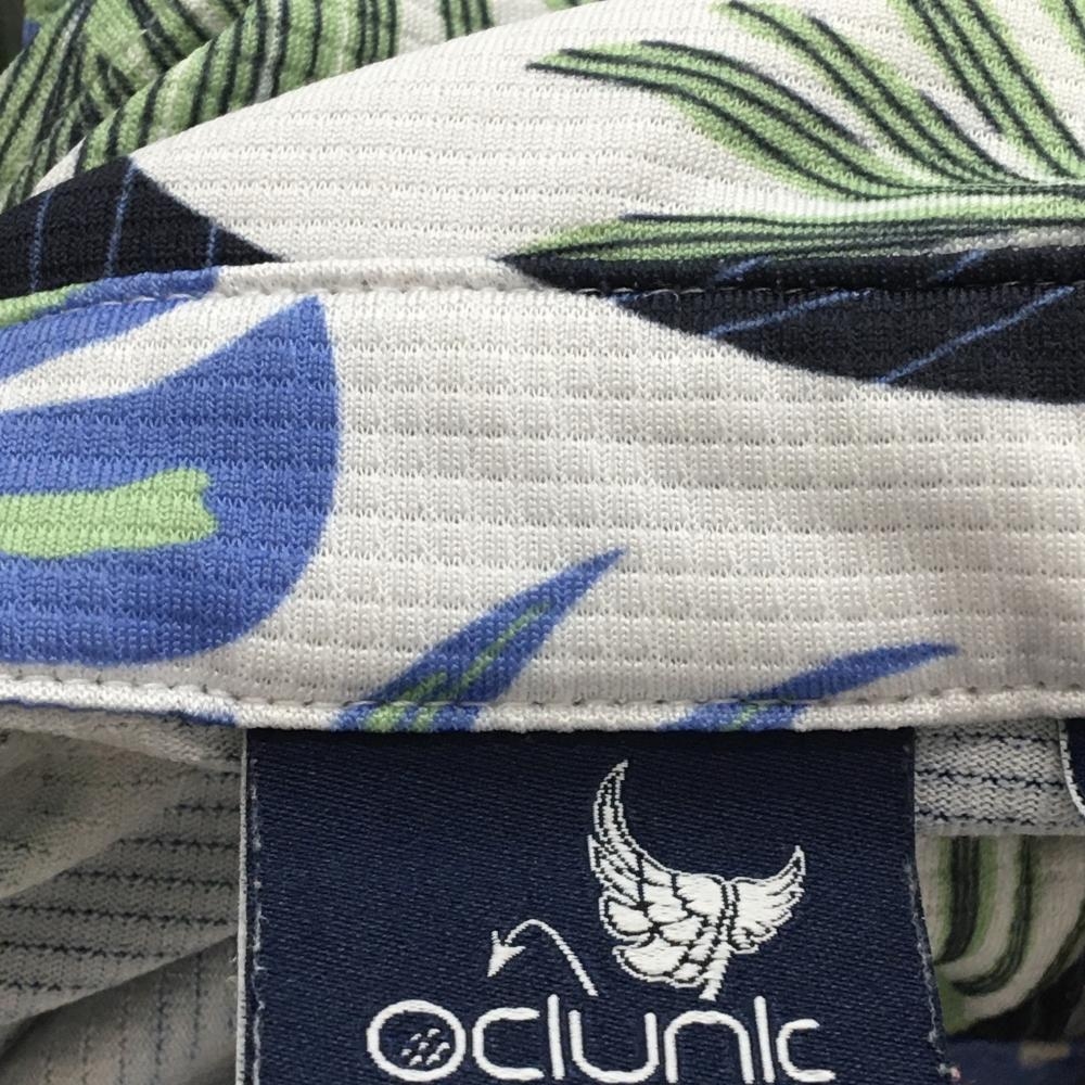 【美品】クランク 半袖ポロワンピース 白×マルチカラー リーフ総柄 内側インナースカート付 レディース S ゴルフウェア CLUNK