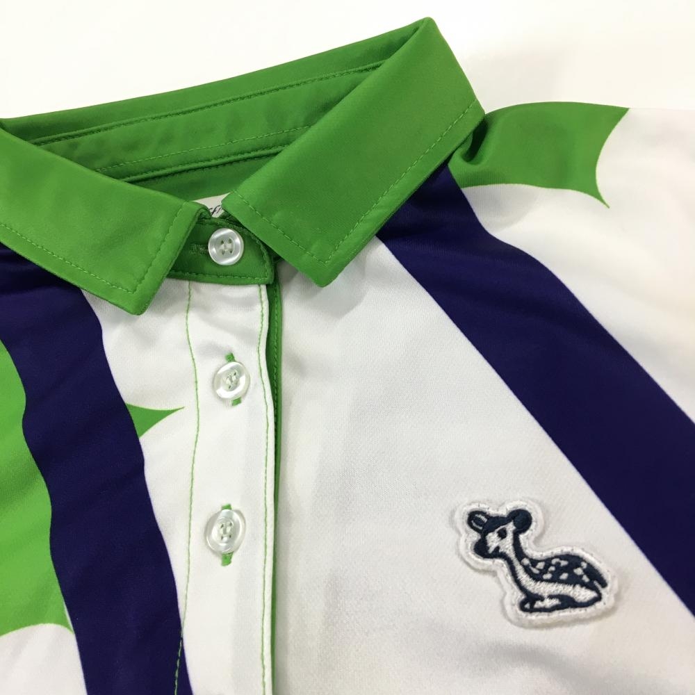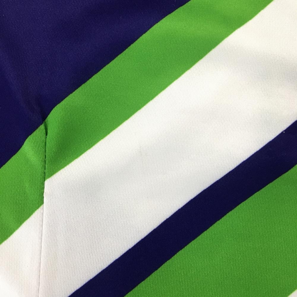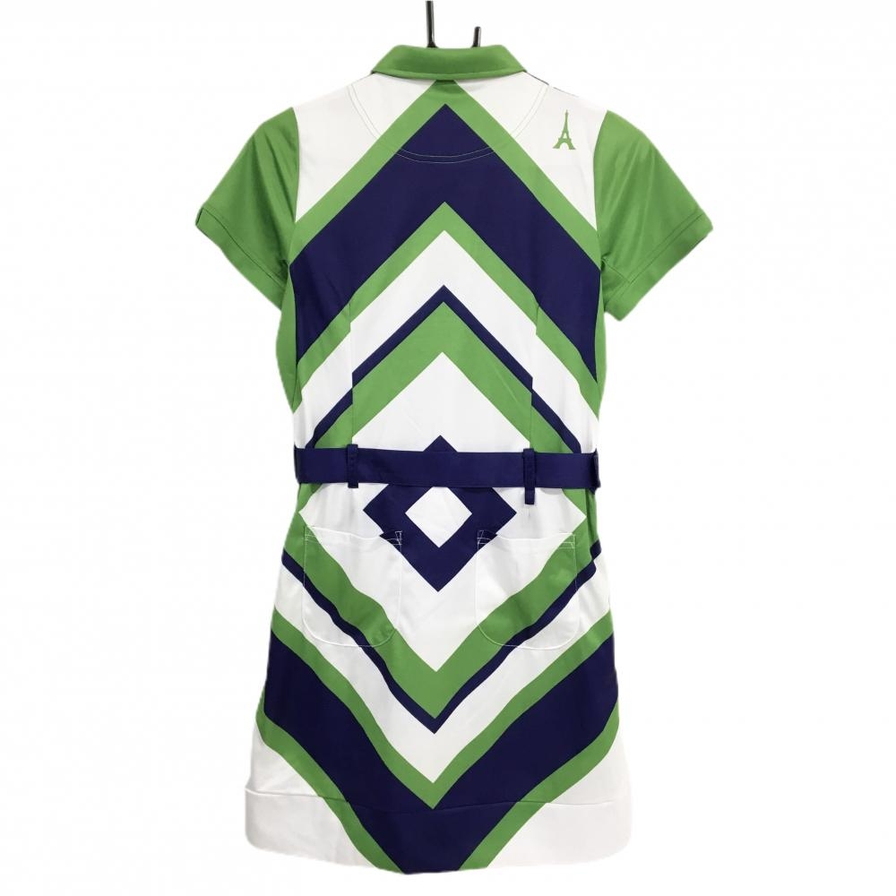 【超美品】エフィカス 半袖ポロワンピース ライトグリーン×白×パープル 総柄 レディース S ゴルフウェア efficace