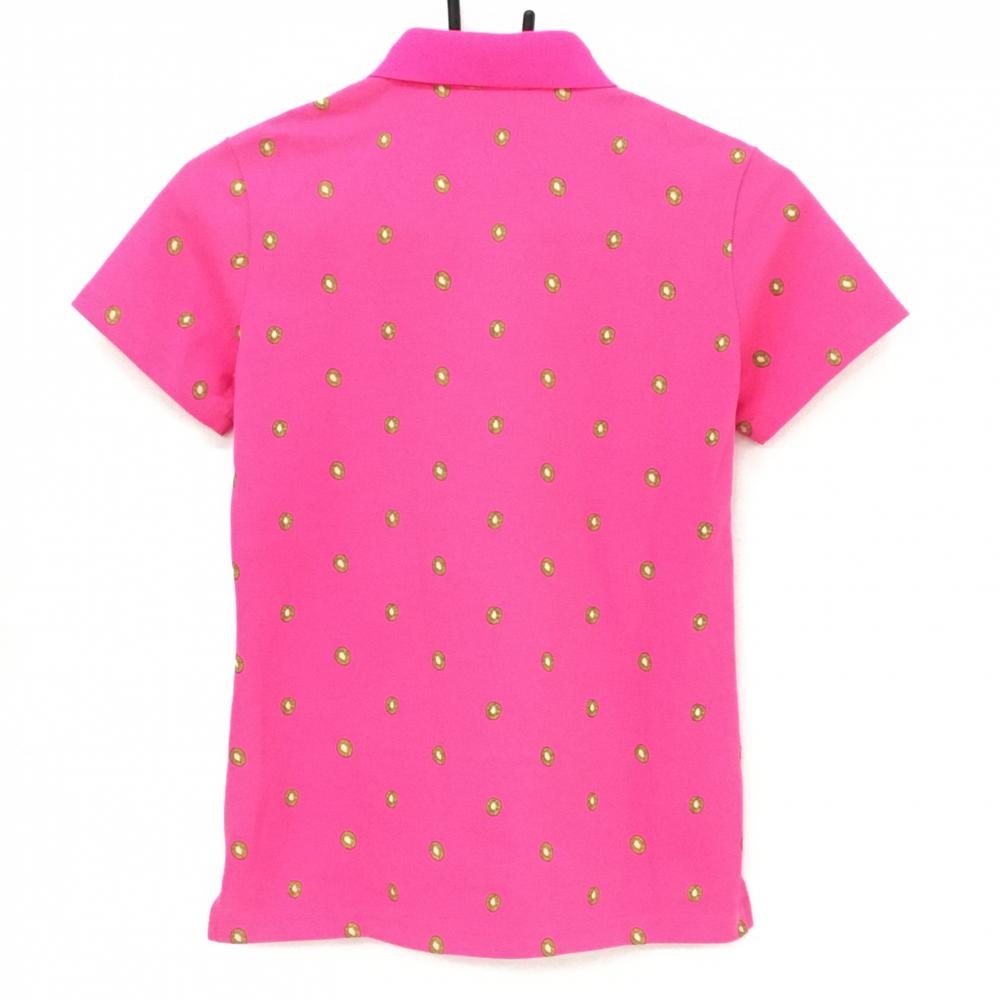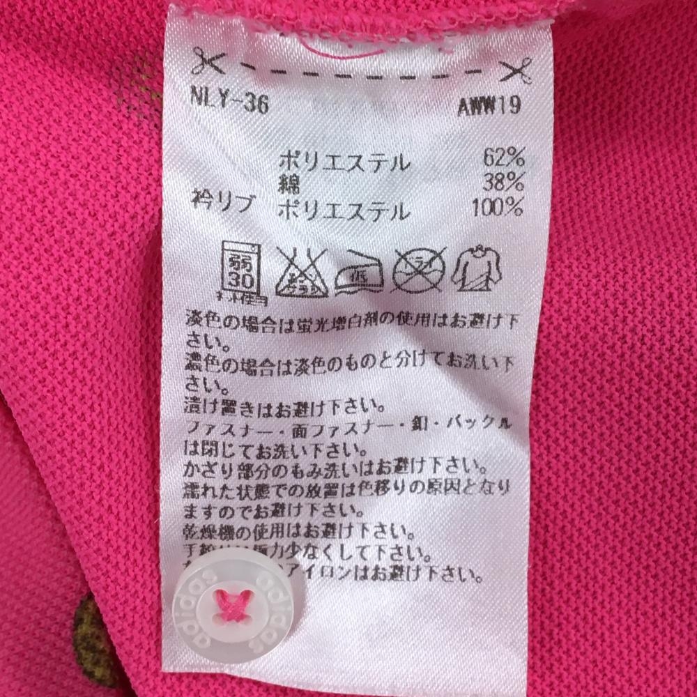 【超美品】アディダス 半袖ポロシャツ ピンク×ライトグリーン キウイ柄 ロゴ刺しゅう 襟裏ロゴ レディース S/P ゴルフウェア adidas