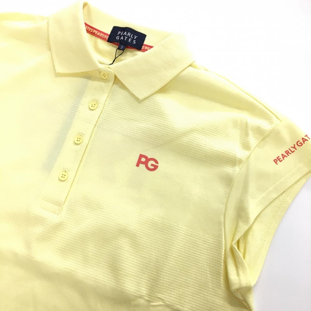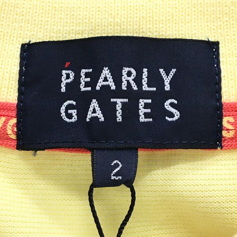 【新品】パーリーゲイツ 半袖ポロシャツ イエロー×ピンクレッド ボーダー調地模様 レディース 2(L) ゴルフウェア PEARLY GATES
