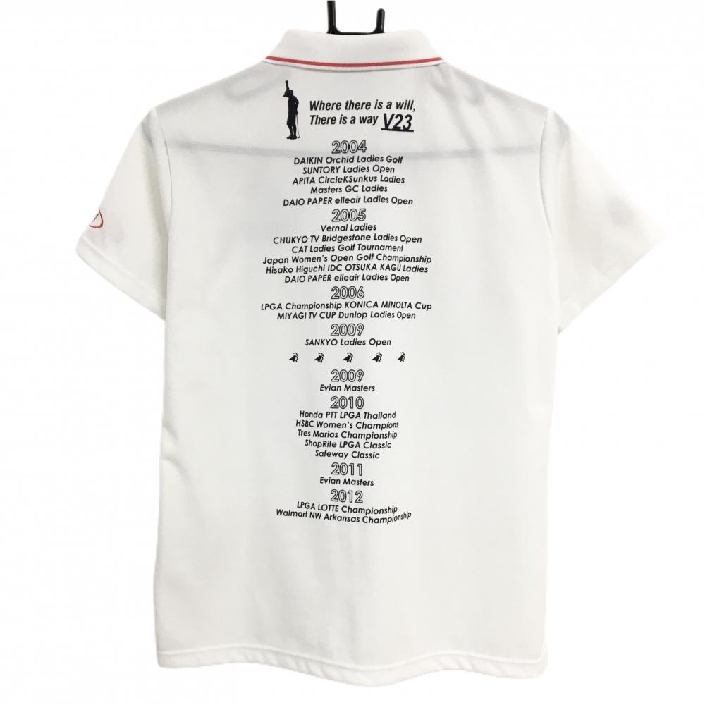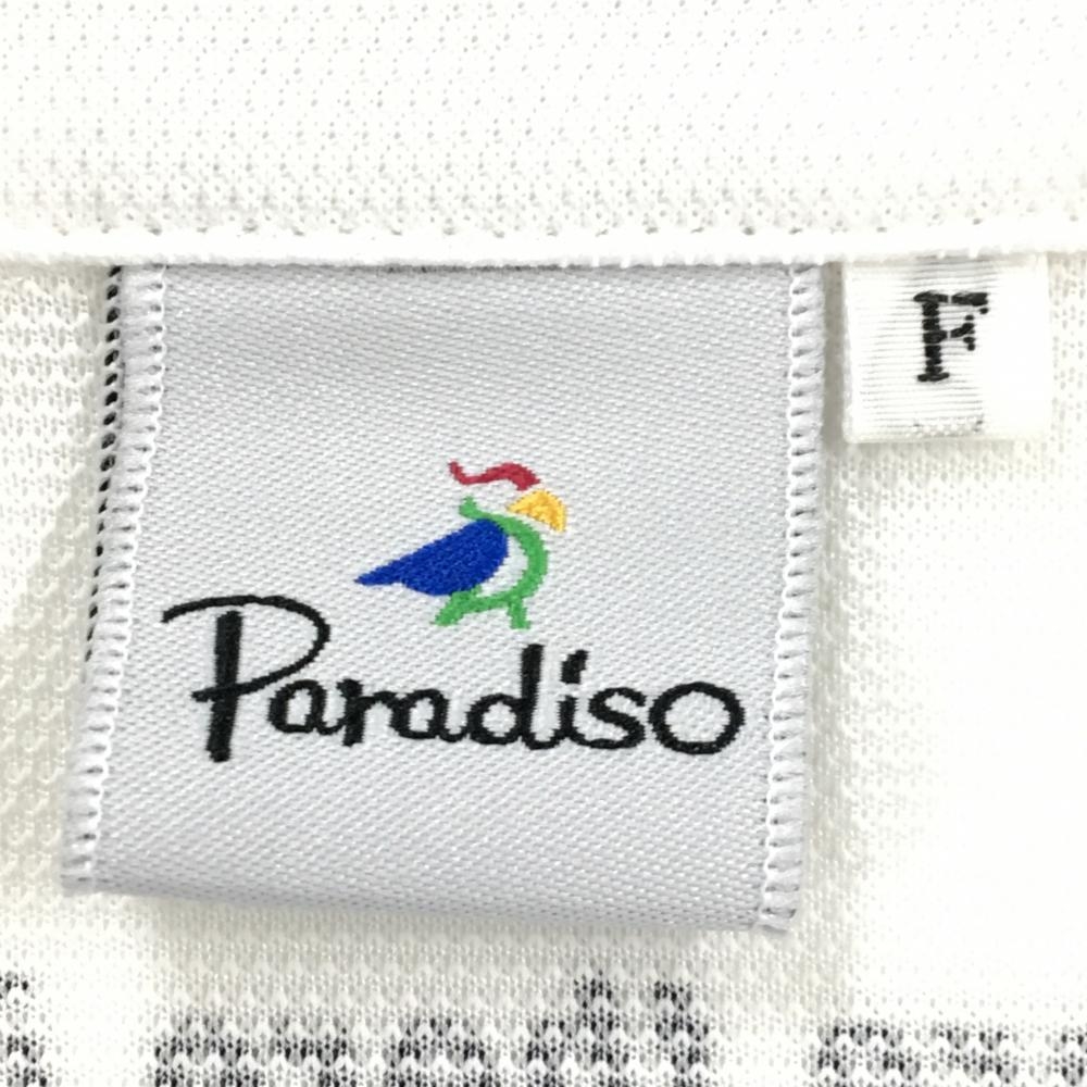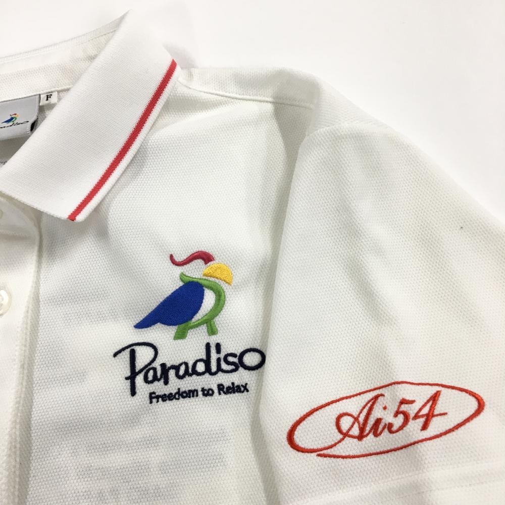 【超美品】パラディーゾ 半袖ポロシャツ 白 ロゴ刺しゅう 背面英字 レディース F ゴルフウェア Paradiso