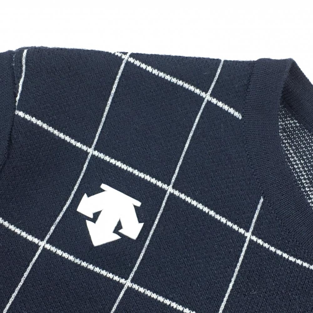【超美品】デサントゴルフ セーター ネイビー×白 前身頃格子柄 ニット 中田英寿 レディース M ゴルフウェア DESCENTE