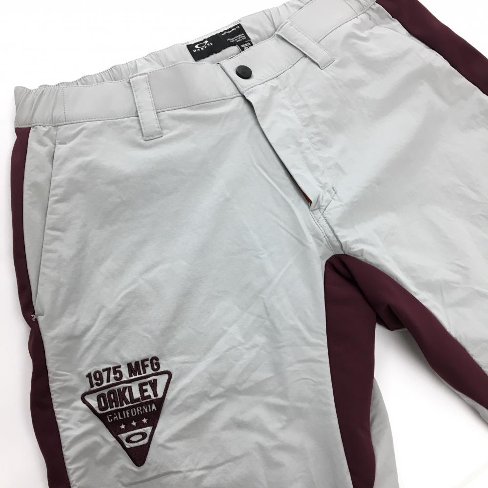 【美品】オークリー パンツ ライトグレー×ボルドー バイカラー ロゴ刺しゅう メンズ M ゴルフウェア Oakley