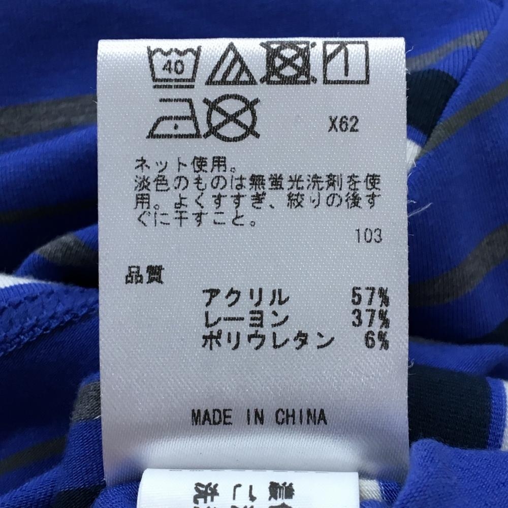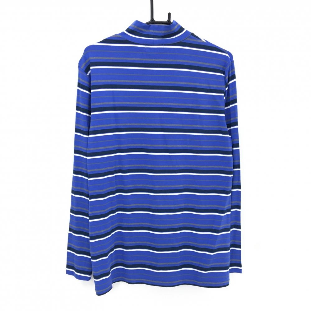 【美品】23区ゴルフ 長袖ハイネックシャツ ブルー×ネイビー ボーダー ストレッチ メンズ LL ゴルフウェア 23区